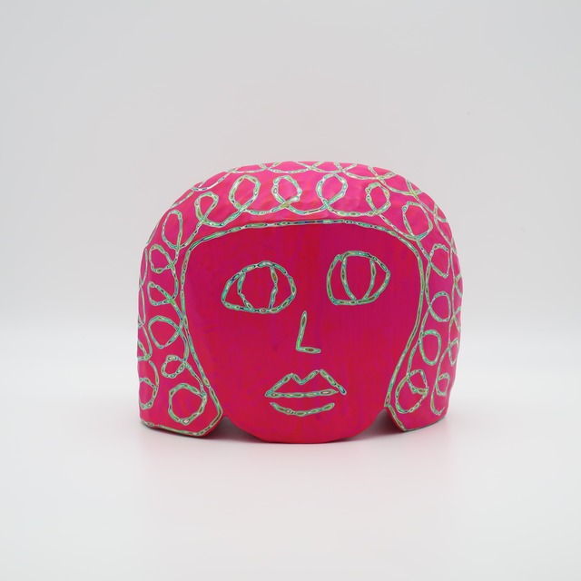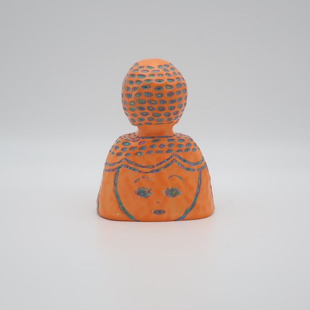 イシス w15×d11.5×h14.5㎝ 100層の色を重ね、色を彫刻する。木彫をベースにしながら、アクリル絵具を気が遠くなるほど塗り重ね、「色」という皮膚を厚くしていきます。 『COLOR SCULPTURE(色彩彫刻)』というオリジナルの手法で制作された木彫作品は、ポップでカラフルな見た目の奥に重層的なレイヤーが現れます。 表面の「かわいさ」だけでなく、その下に隠れた「色の重なり」を覗き見る楽しさがある作品です 今展では不思議な魅力を持つ、ガールズ作品を中心に展示いたします。 ハットリコウヘイ 1978 東京都生まれ 2007 武蔵野美術大学大学院 美術専攻 彫刻コース修了 ※設置場所について ・エアコンの風が直接当たる場所や、極端に乾燥する場所への長時間の設置は避けてください。中の木材が変形し、表面の塗膜にひび割れが生じる恐れがあります。 ・耐水性の絵具を使用しておりますが、木材の性質上、水気のある場所でのご使用・保管はお控えください ※お手入れ方法 ほこりや汚れが付着した際は、乾いた柔らかい布で優しく拭き取ってください。変形やシミの原因となるため、水拭きは避けてください。 ※お使いの端末や閲覧環境により、写真と実物の色味や質感が多少異なって見えることがございます。ご了承ください。