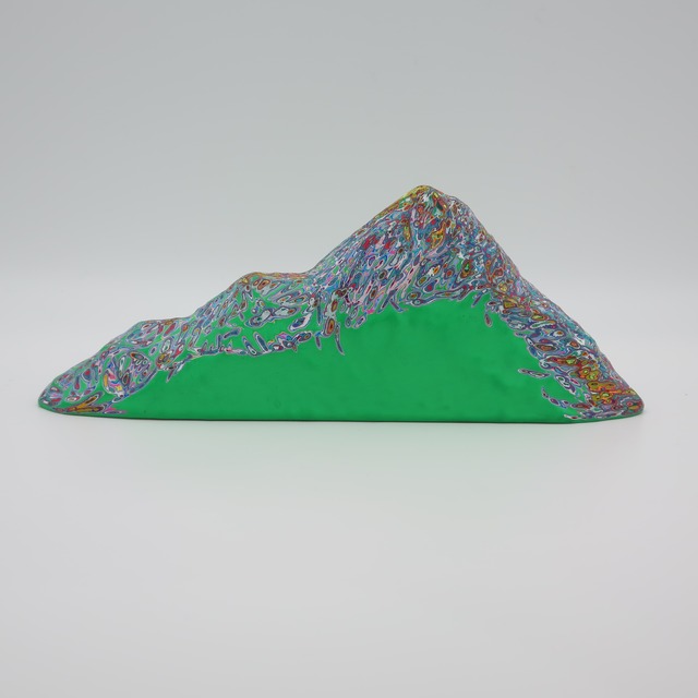 マウンテン(グリーン) w16×d4×h4㎝ 100層の色を重ね、色を彫刻する。木彫をベースにしながら、アクリル絵具を気が遠くなるほど塗り重ね、「色」という皮膚を厚くしていきます。 『COLOR SCULPTURE(色彩彫刻)』というオリジナルの手法で制作された木彫作品は、ポップでカラフルな見た目の奥に重層的なレイヤーが現れます。 表面の「かわいさ」だけでなく、その下に隠れた「色の重なり」を覗き見る楽しさがある作品です 今展では不思議な魅力を持つ、ガールズ作品を中心に展示いたします。 ハットリコウヘイ 1978 東京都生まれ 2007 武蔵野美術大学大学院 美術専攻 彫刻コース修了 ※設置場所について ・エアコンの風が直接当たる場所や、極端に乾燥する場所への長時間の設置は避けてください。中の木材が変形し、表面の塗膜にひび割れが生じる恐れがあります。 ・耐水性の絵具を使用しておりますが、木材の性質上、水気のある場所でのご使用・保管はお控えください ※お手入れ方法 ほこりや汚れが付着した際は、乾いた柔らかい布で優しく拭き取ってください。変形やシミの原因となるため、水拭きは避けてください。 ※お使いの端末や閲覧環境により、写真と実物の色味や質感が多少異なって見えることがございます。ご了承ください。