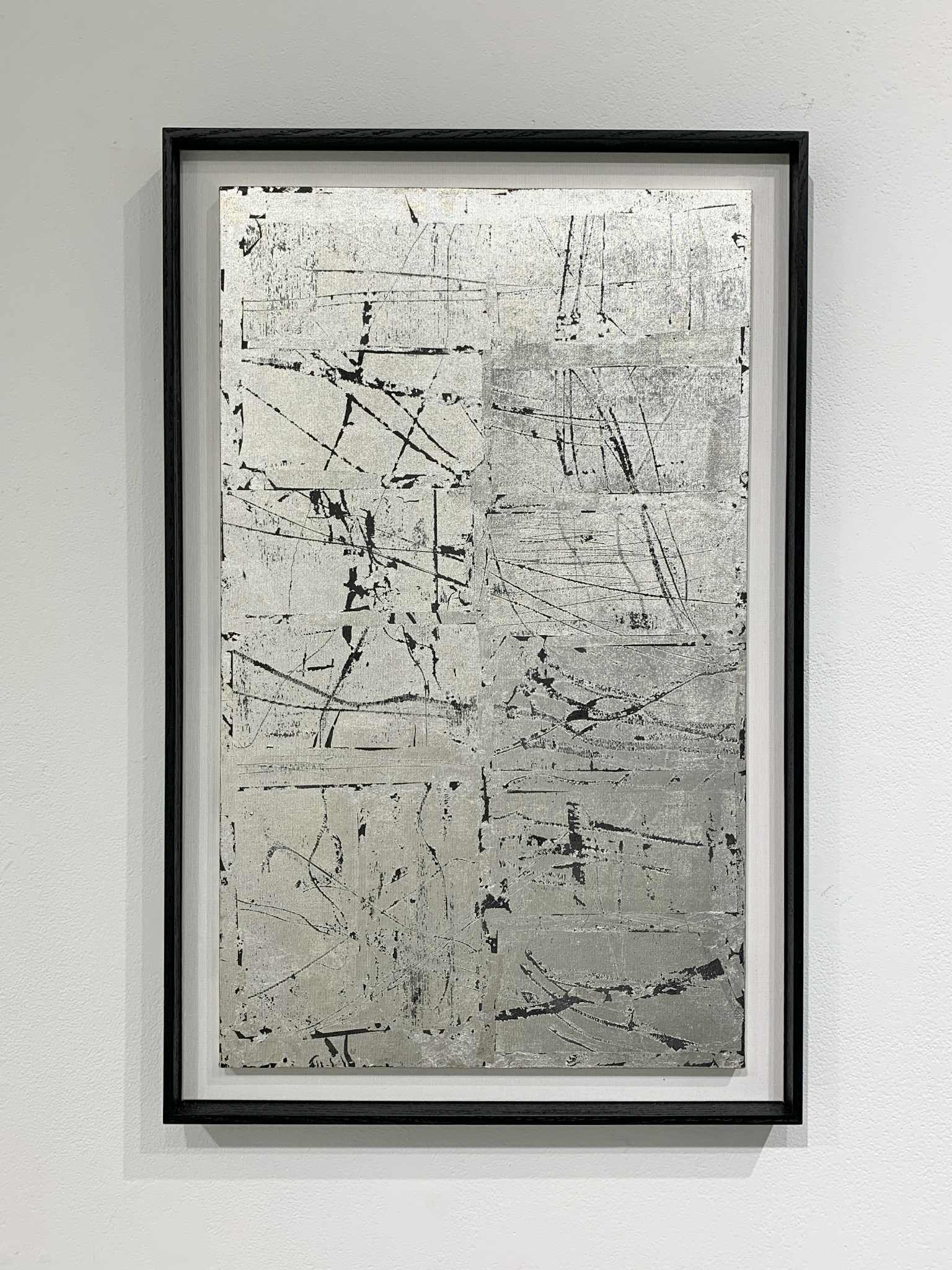 墨、銀箔、膠、紙、布 木製フレーム