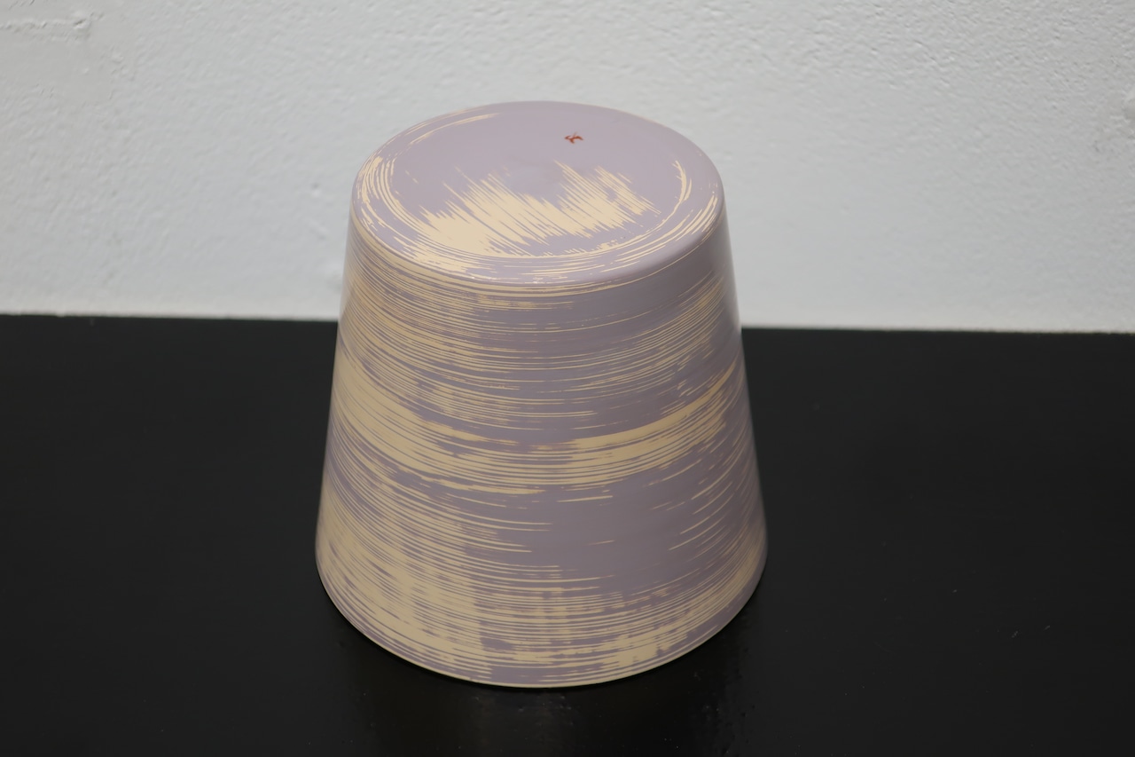 私は、漆ならではの艶やかな質感や透け感を活かしながら、現代的な色合いを重ねることで、精神や記憶の境界を表現したいと考えています。主に「変塗(かわりぬり)」という技法を用い、漆を幾重にも塗り重ねて研ぎ出すことで独自の模様を描き出しています。変塗は江戸時代に刀の鞘に多く用いられた技法で、現代では津軽塗として知られています。私は漆本来の落ち着いた色味に現代的な色相を掛け合わせ、日常に親しみやすい作品づくりを心がけています。