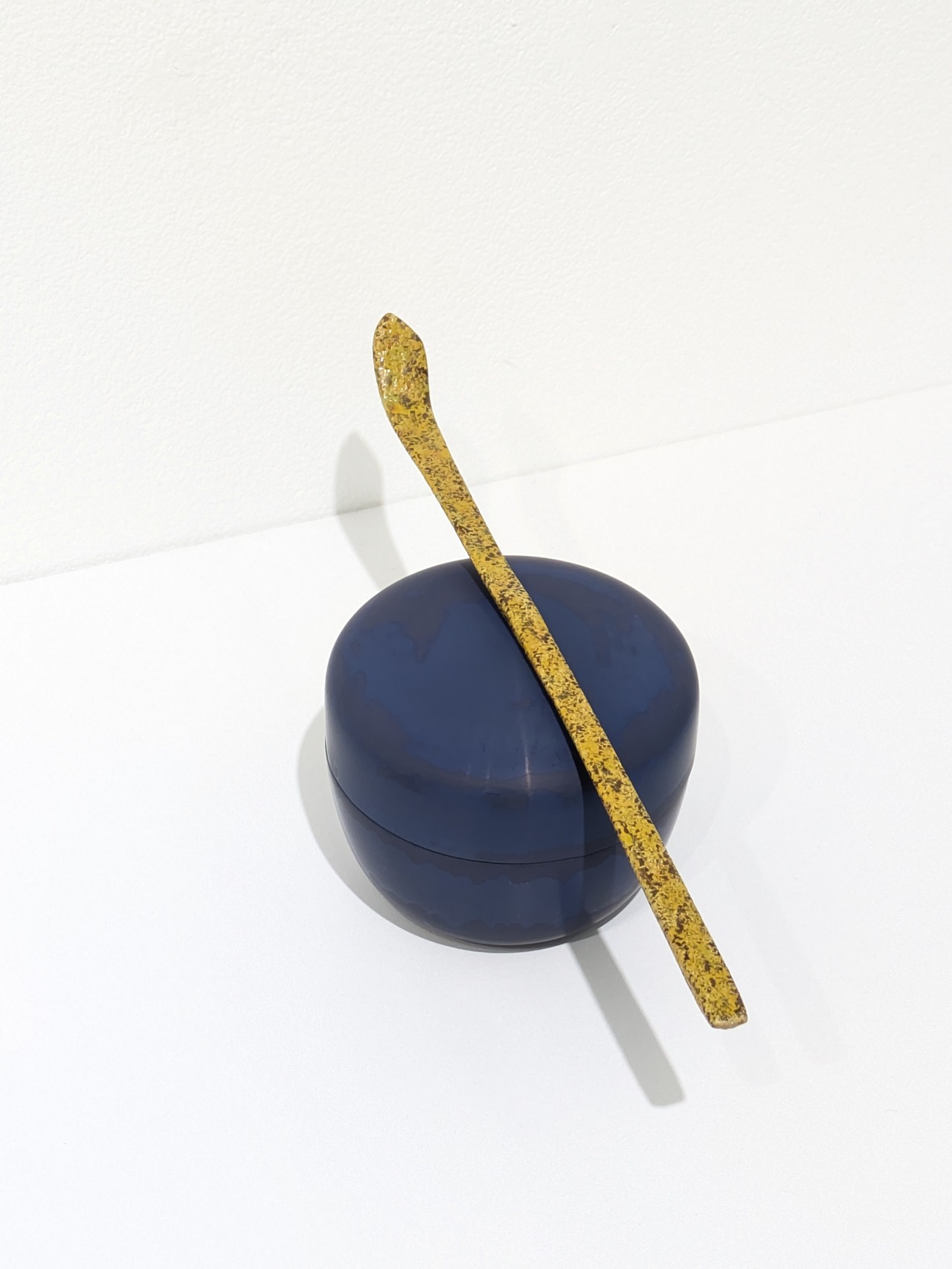 私は、漆ならではの艶やかな質感や透け感を活かしながら、現代的な色合いを重ねることで、精神や記憶の境界を表現したいと考えています。主に「変塗(かわりぬり)」という技法を用い、漆を幾重にも塗り重ねて研ぎ出すことで独自の模様を描き出しています。変塗は江戸時代に刀の鞘に多く用いられた技法で、現代では津軽塗として知られています。私は漆本来の落ち着いた色味に現代的な色相を掛け合わせ、日常に親しみやすい作品づくりを心がけています。