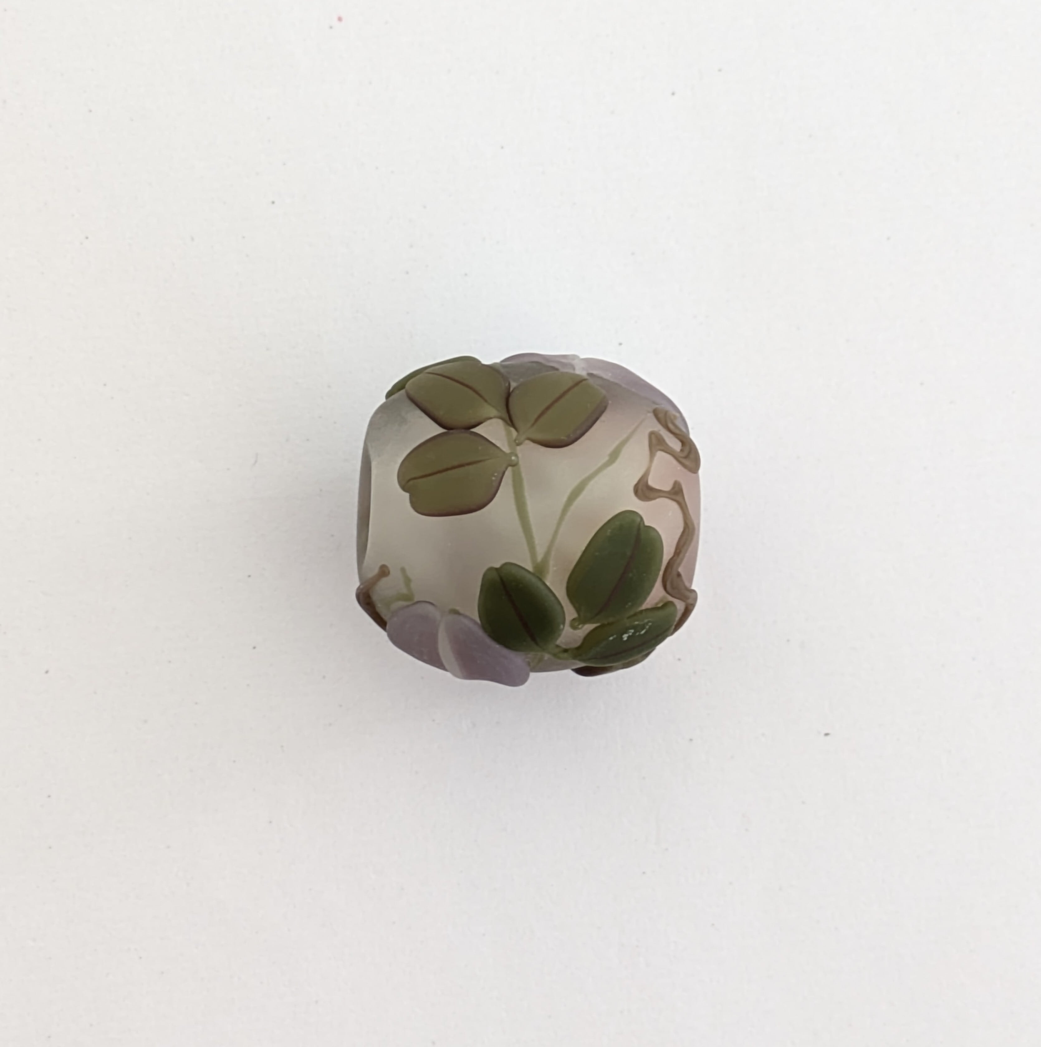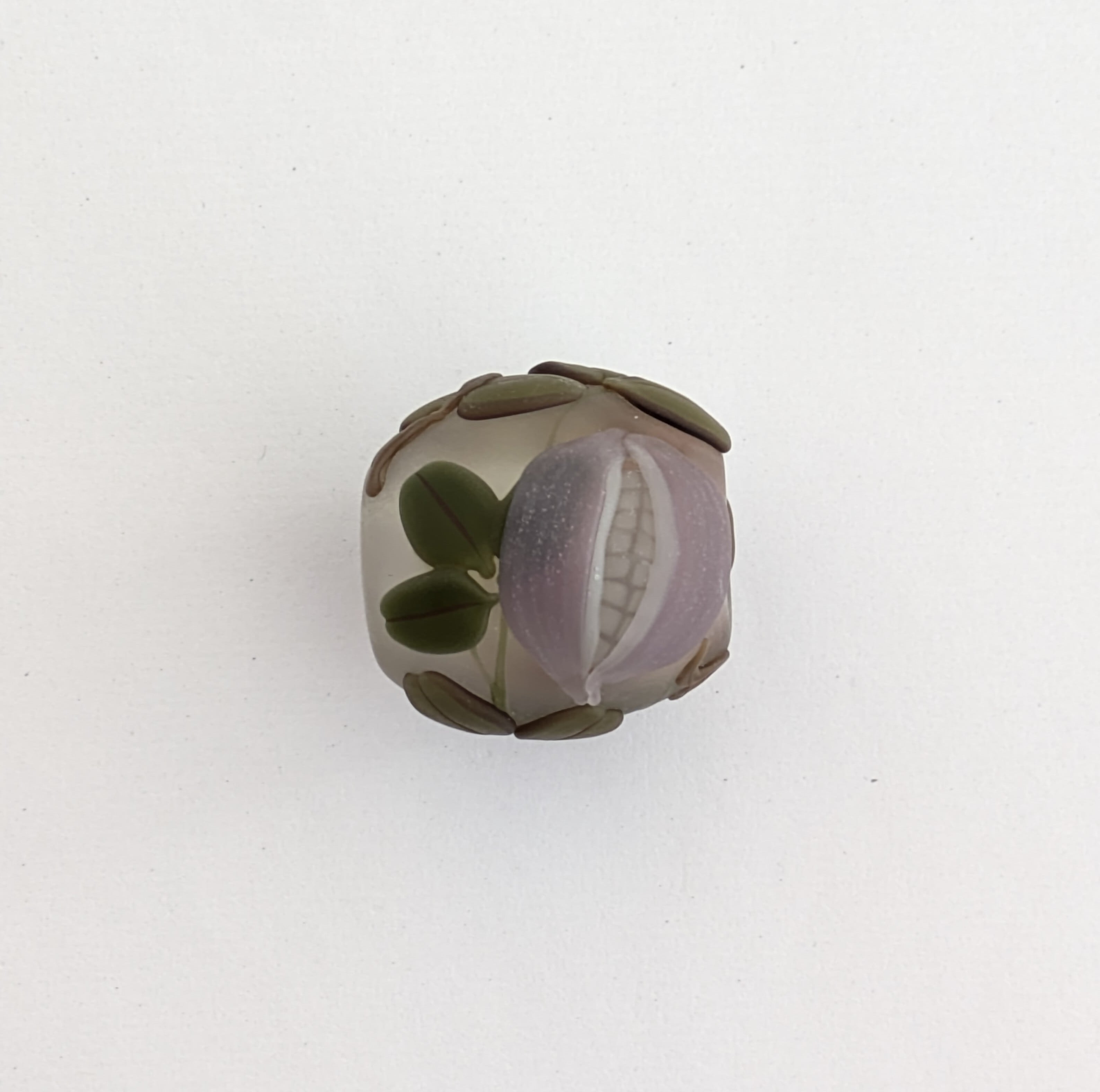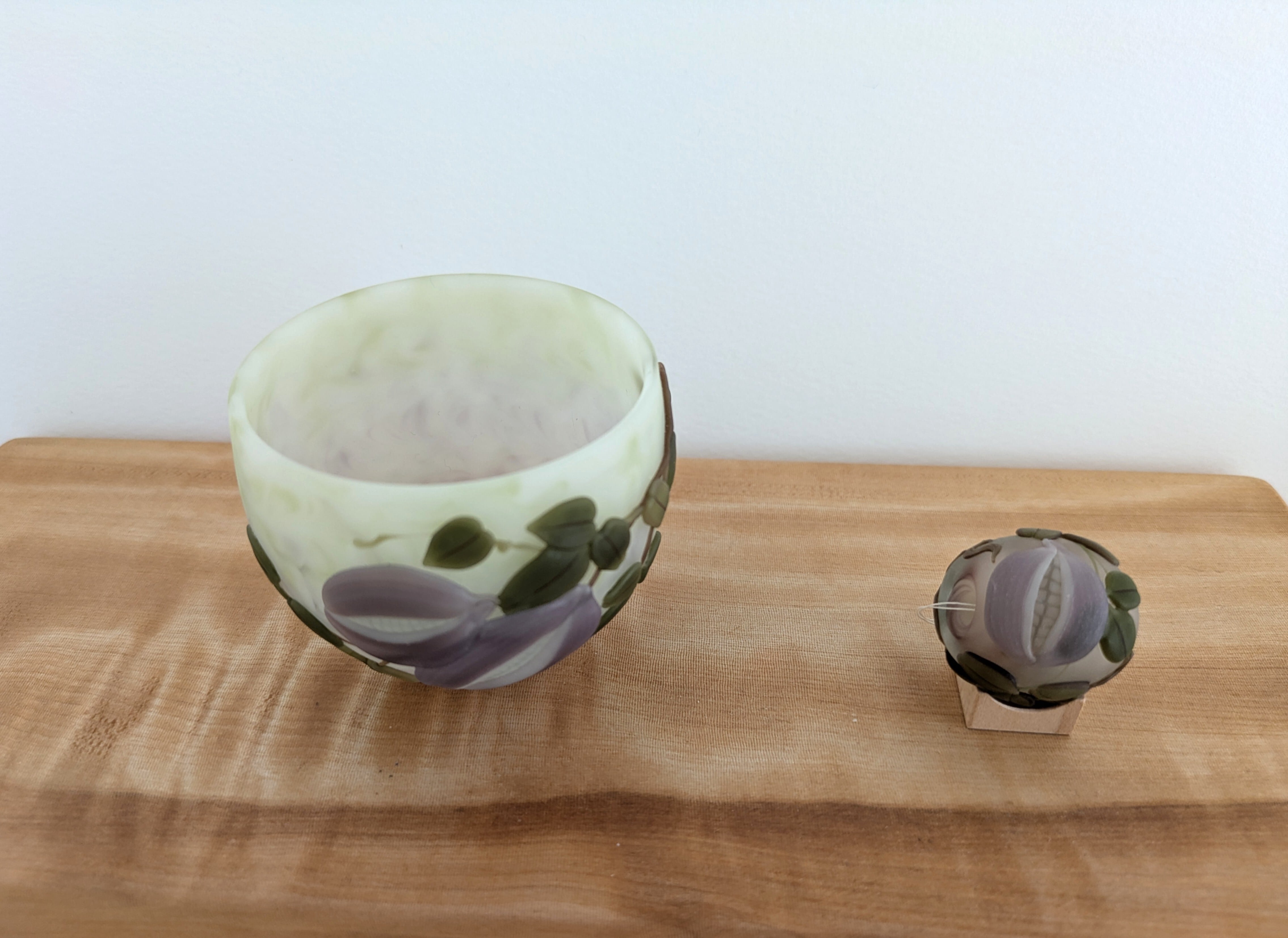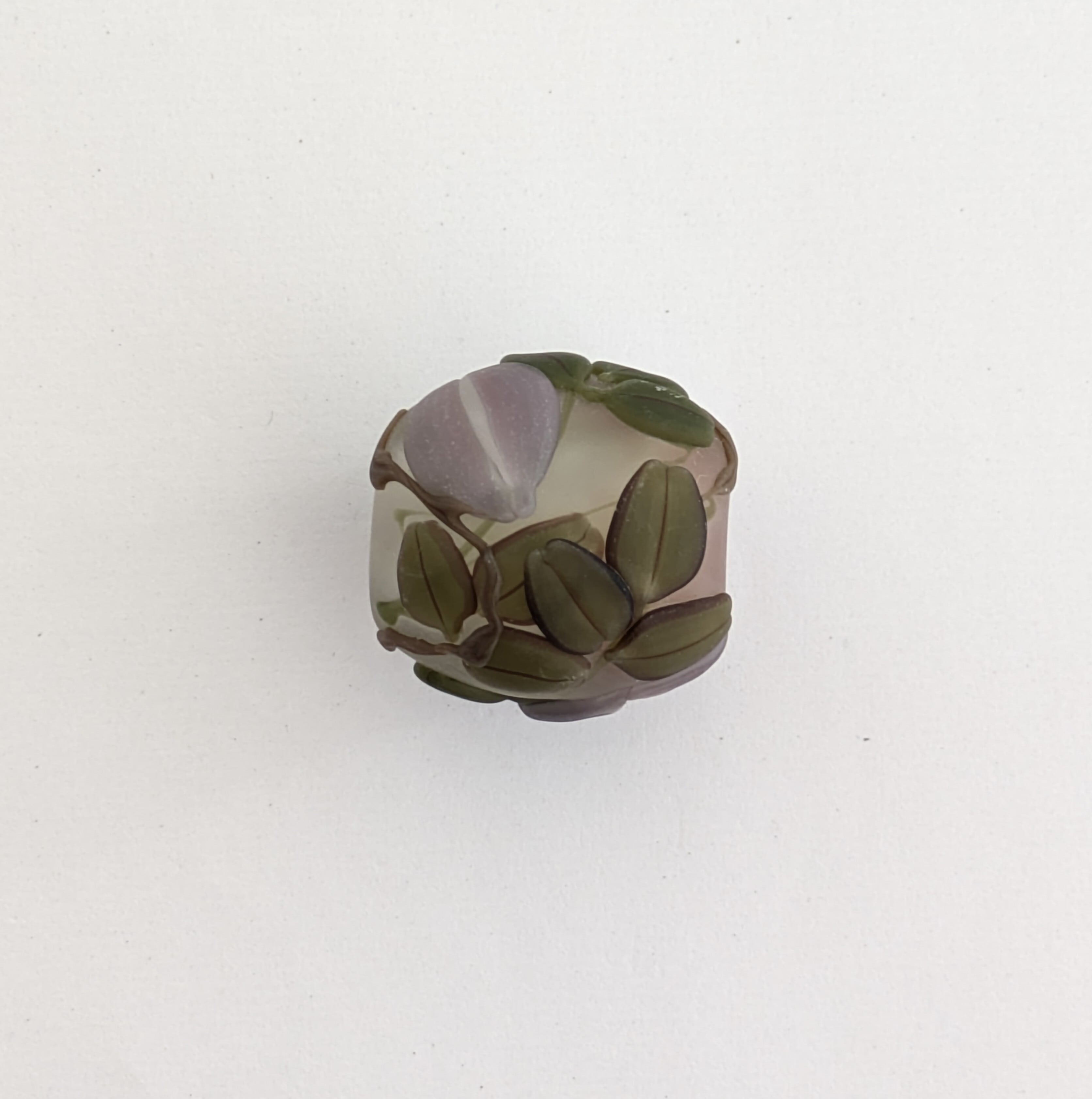 これらはコアガラスと呼ばれる技法です。その技法を用いて、身近な草木花を立体的に表し、四季折々の空気が感じられる作品を手掛けています。
