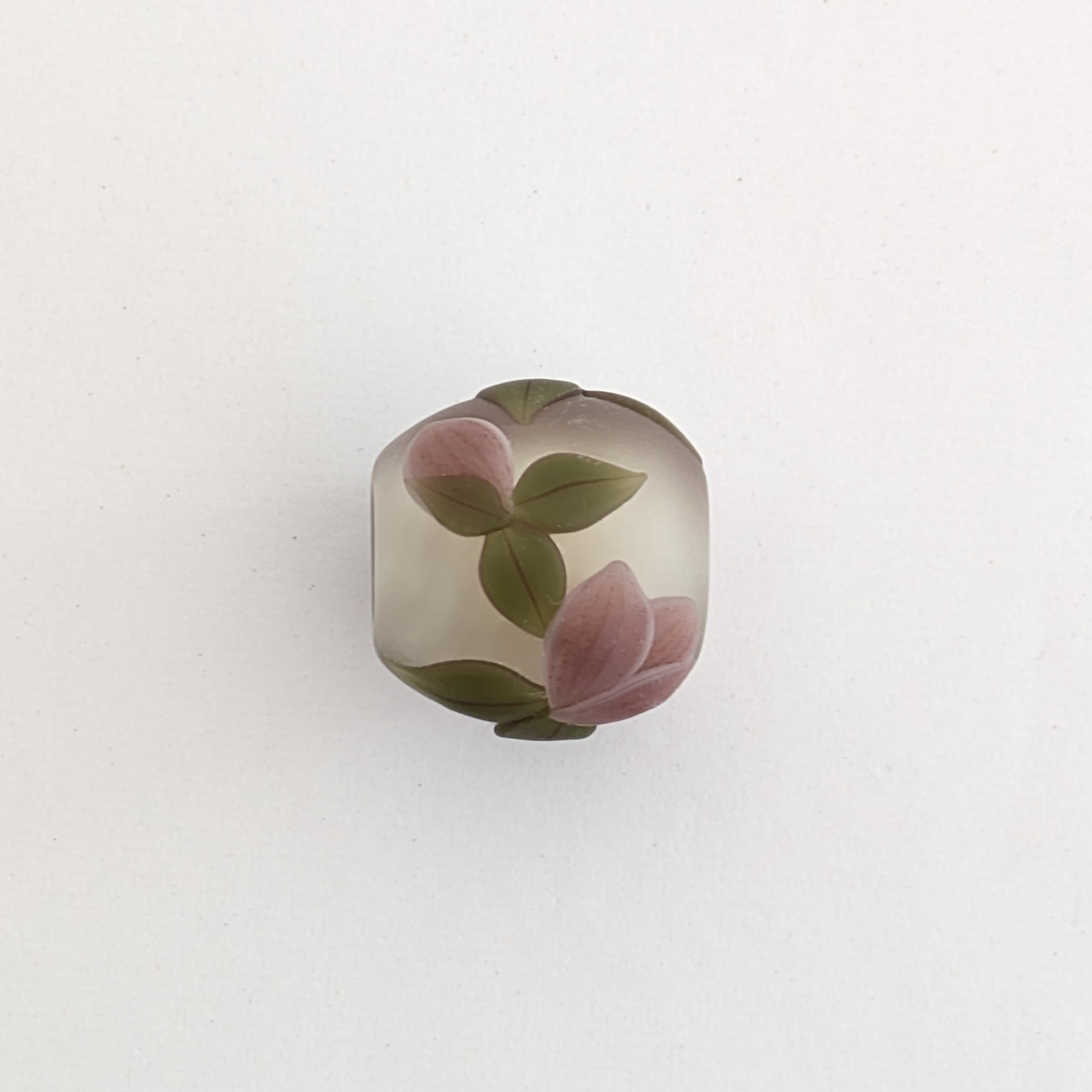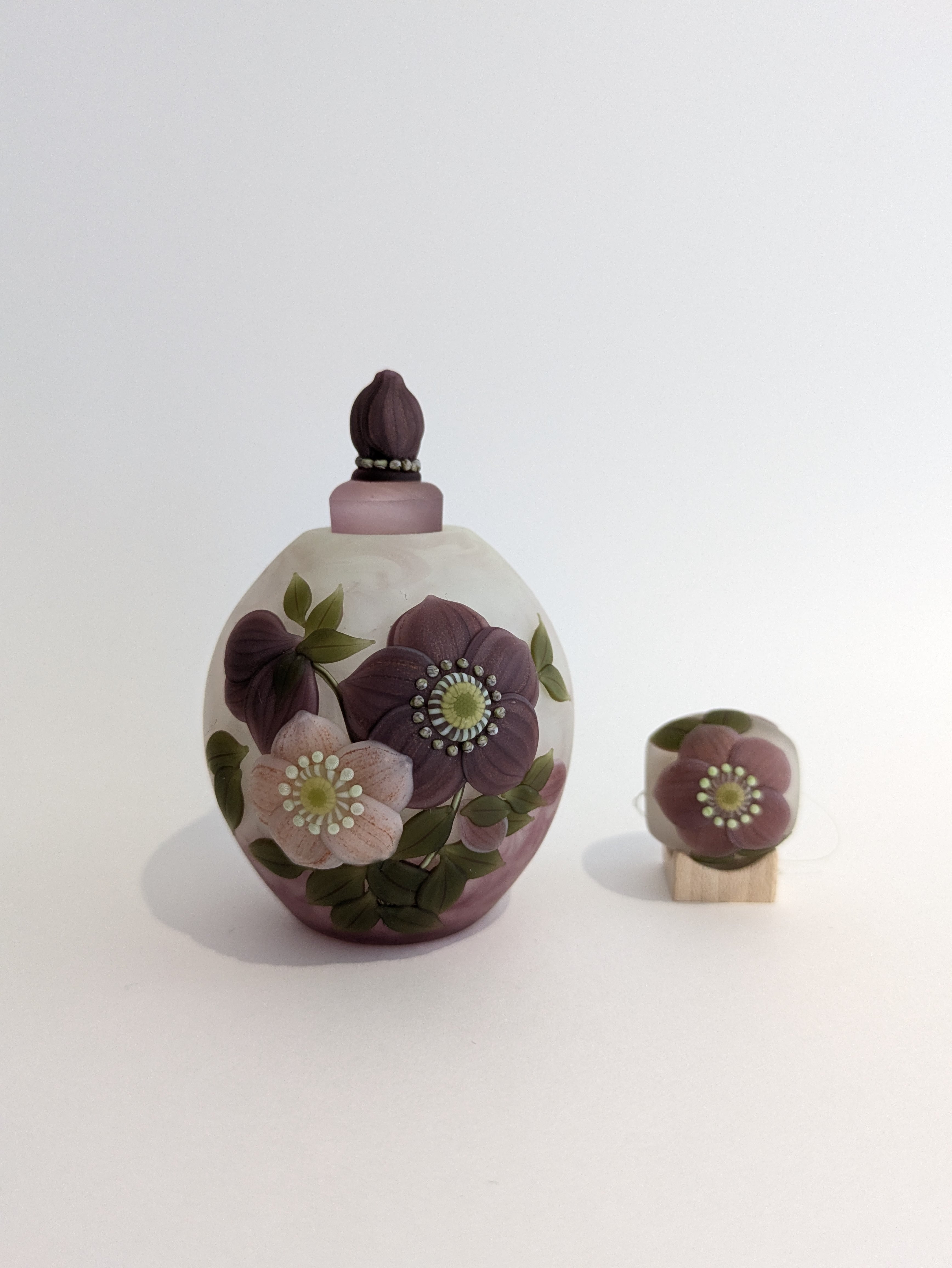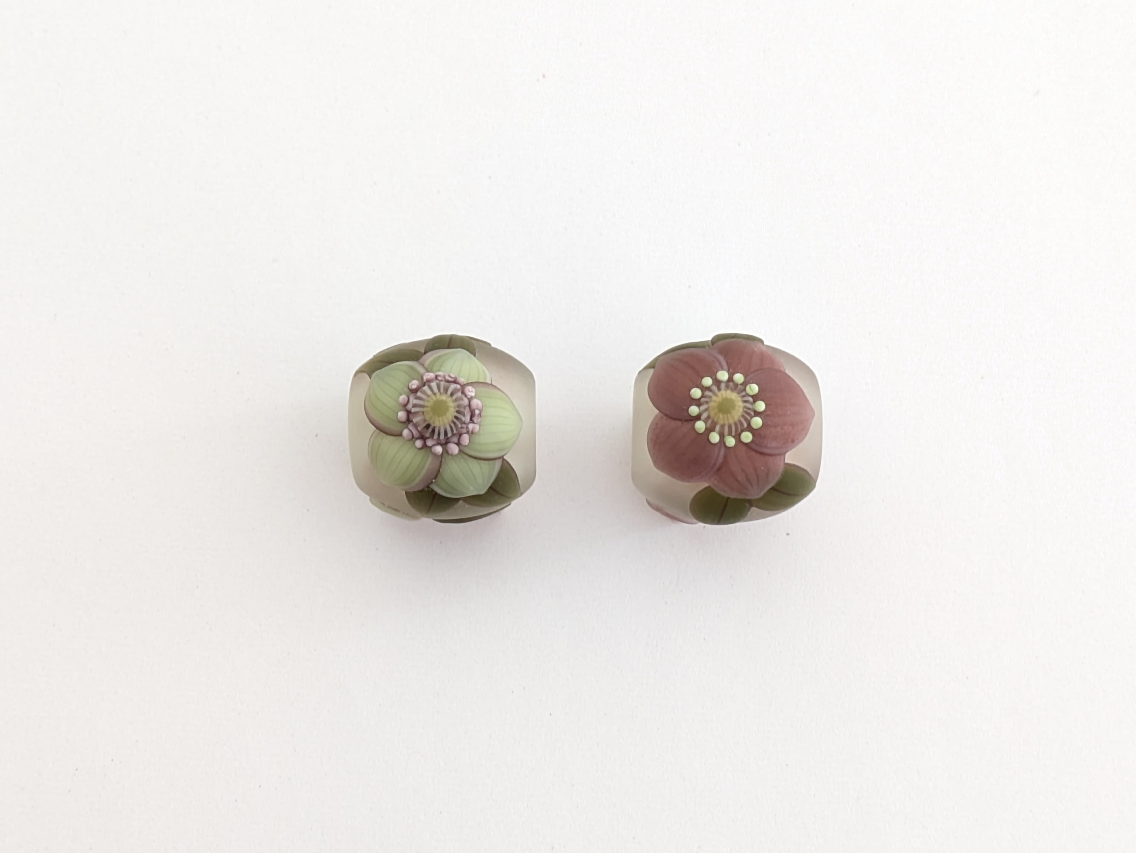 これらはコアガラスと呼ばれる技法です。その技法を用いて、身近な草木花を立体的に表し、四季折々の空気が感じられる作品を手掛けています。