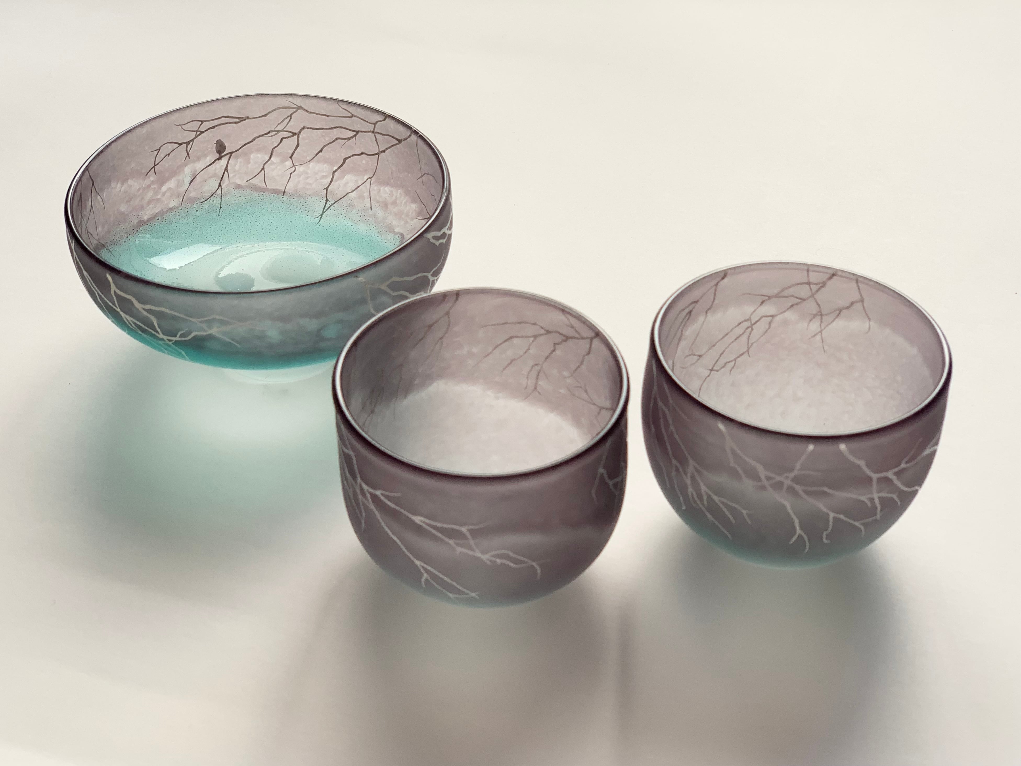 今展では、冬から翌春の植物や景色を描いた蓋物、酒器、うつわを出展いたします。