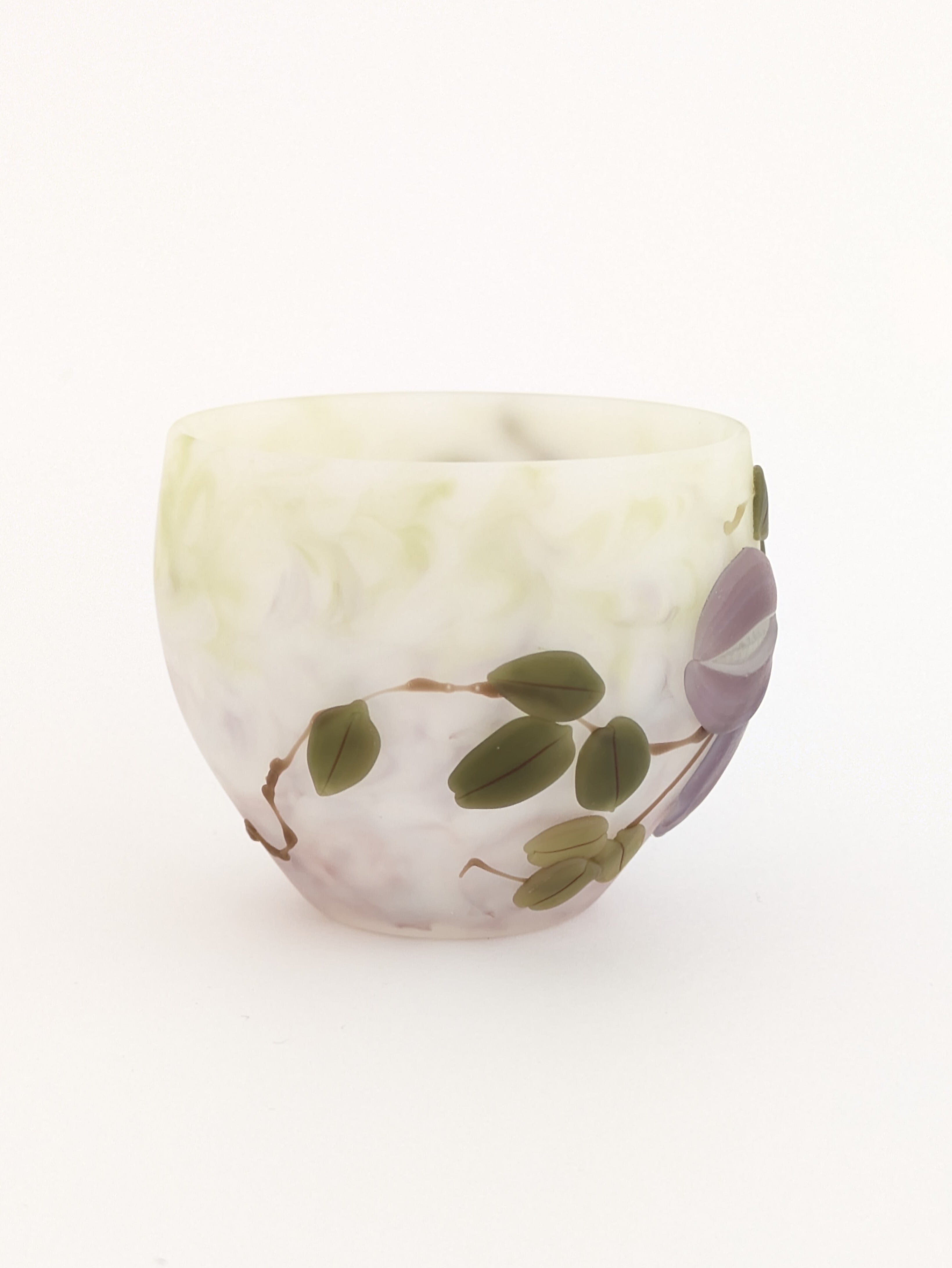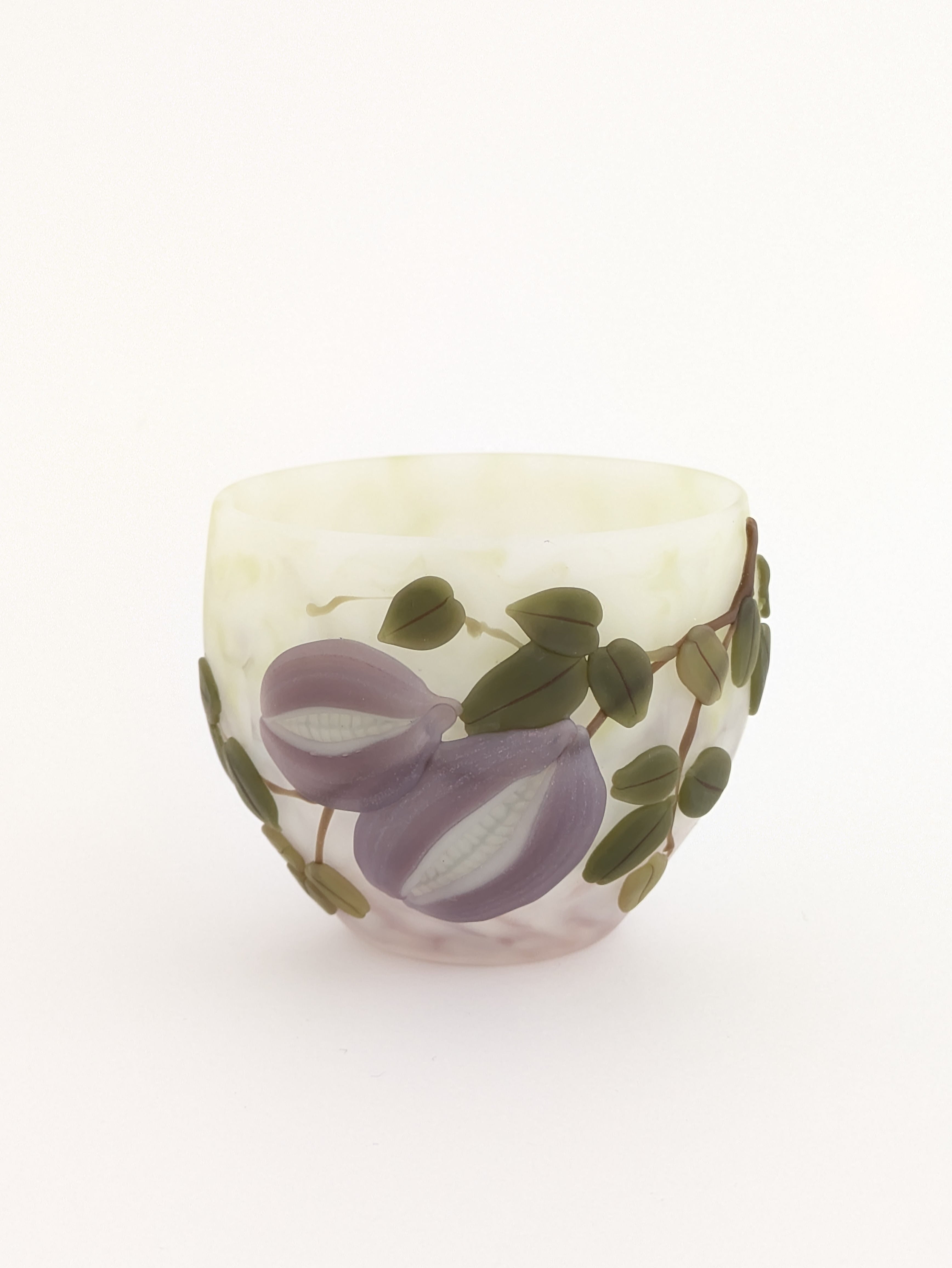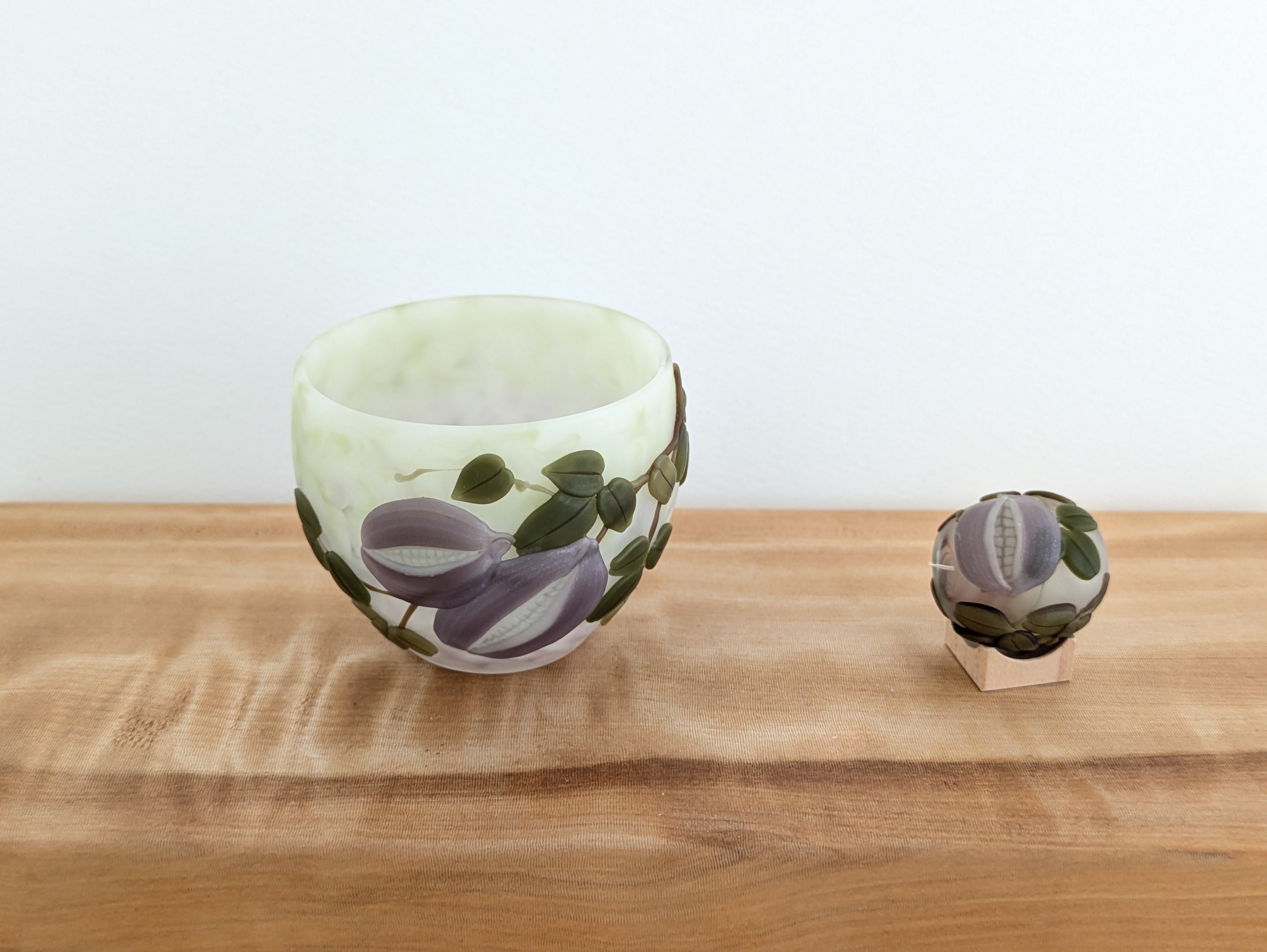 これらはコアガラスと呼ばれる技法です。その技法を用いて、身近な草木花を立体的に表し、四季折々の空気が感じられる作品を手掛けています。