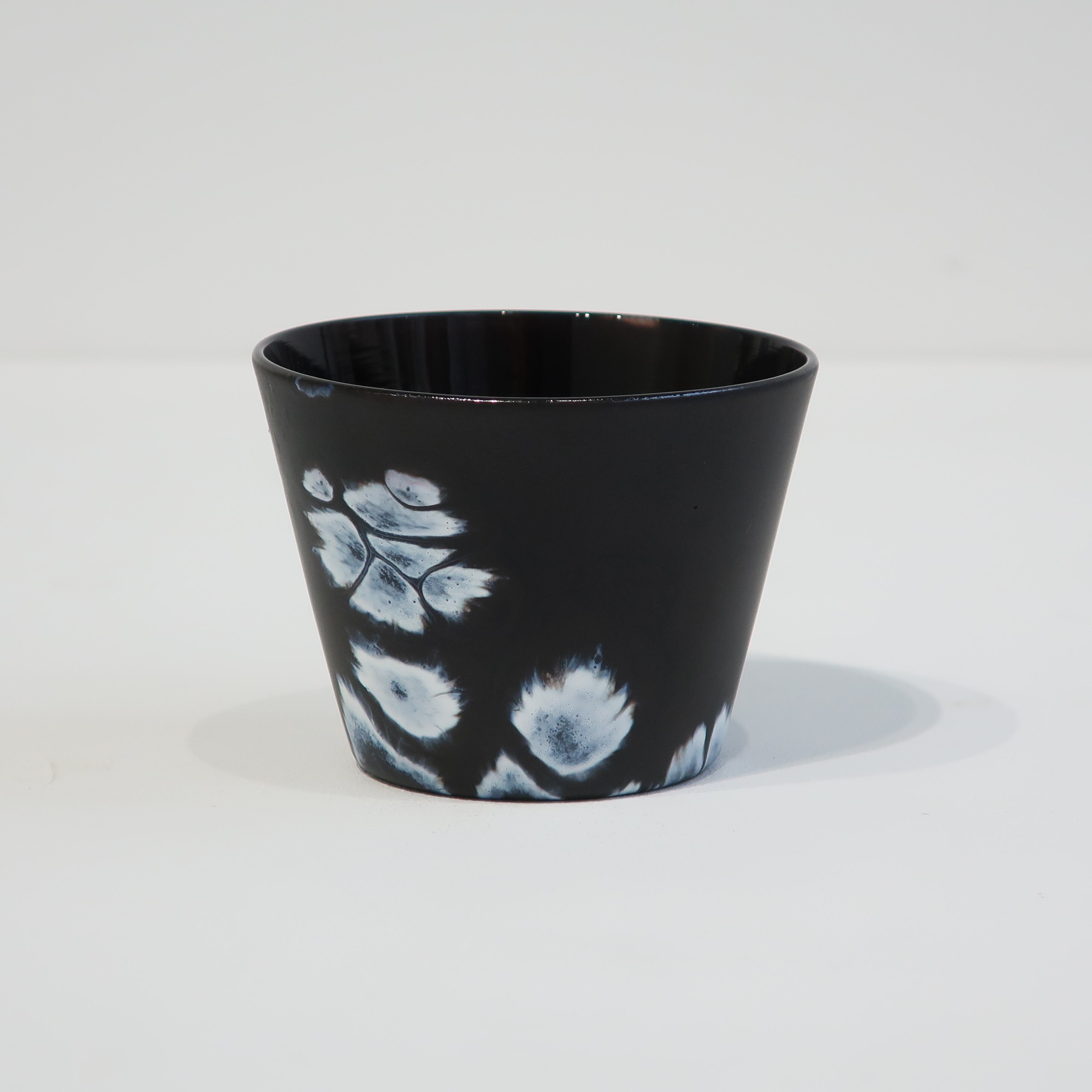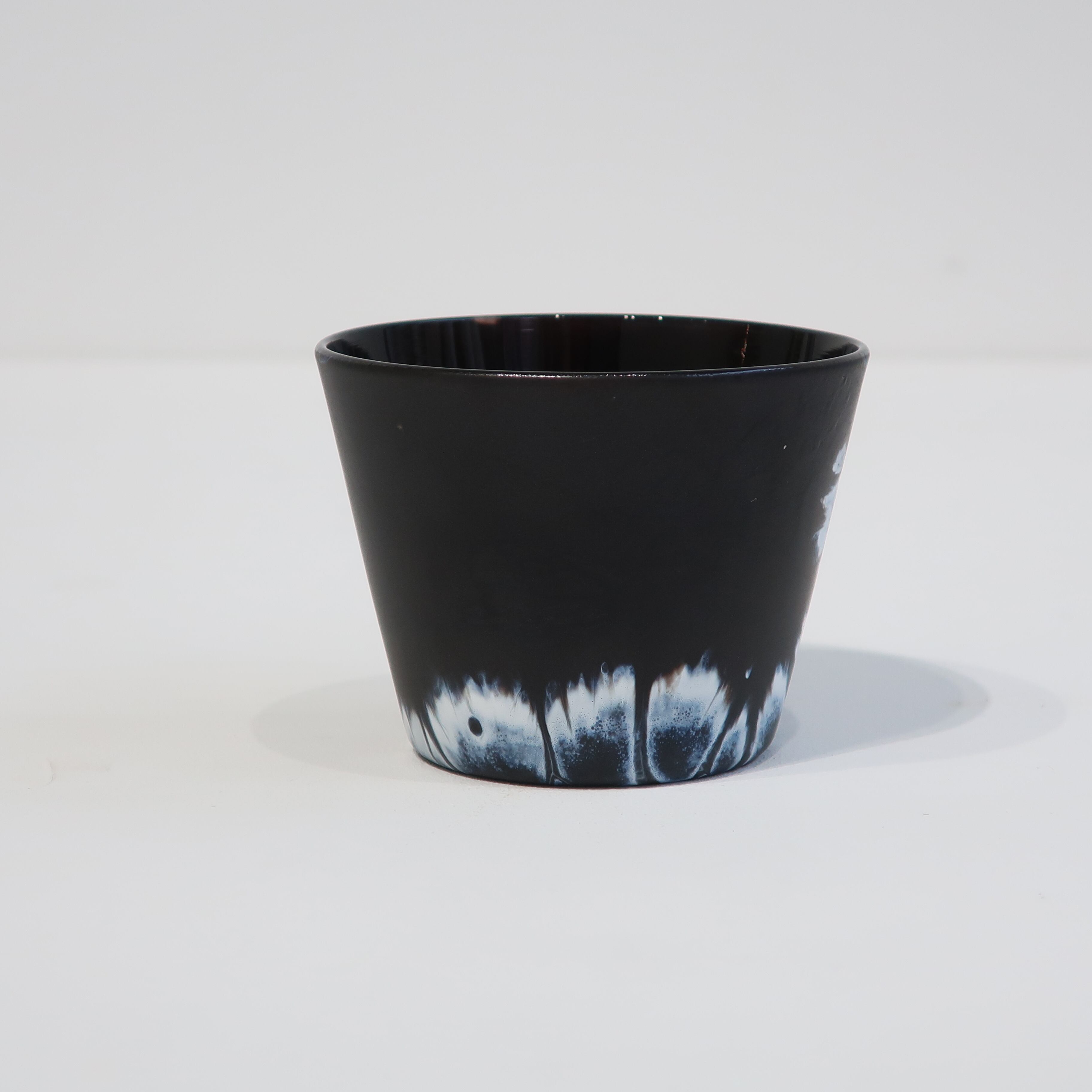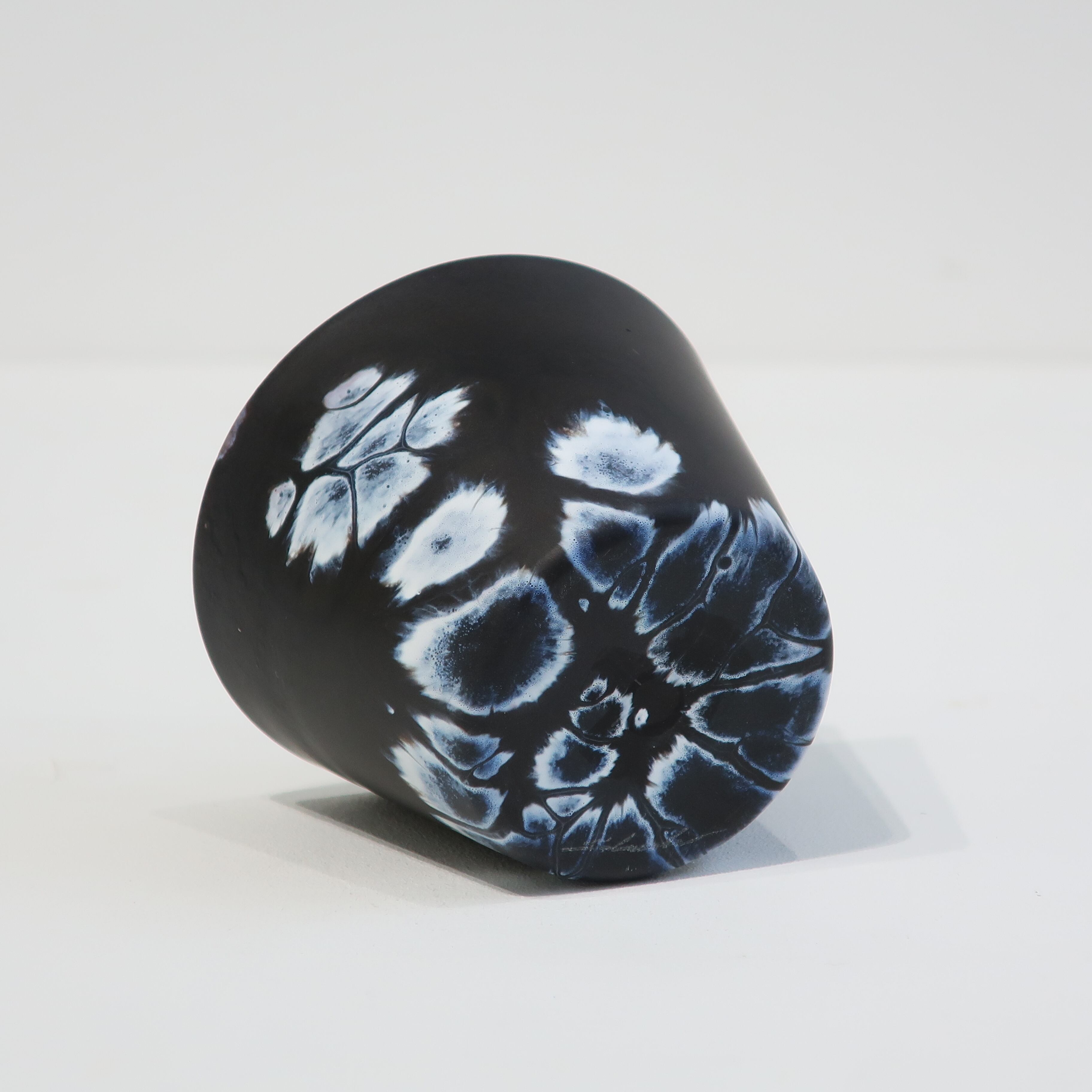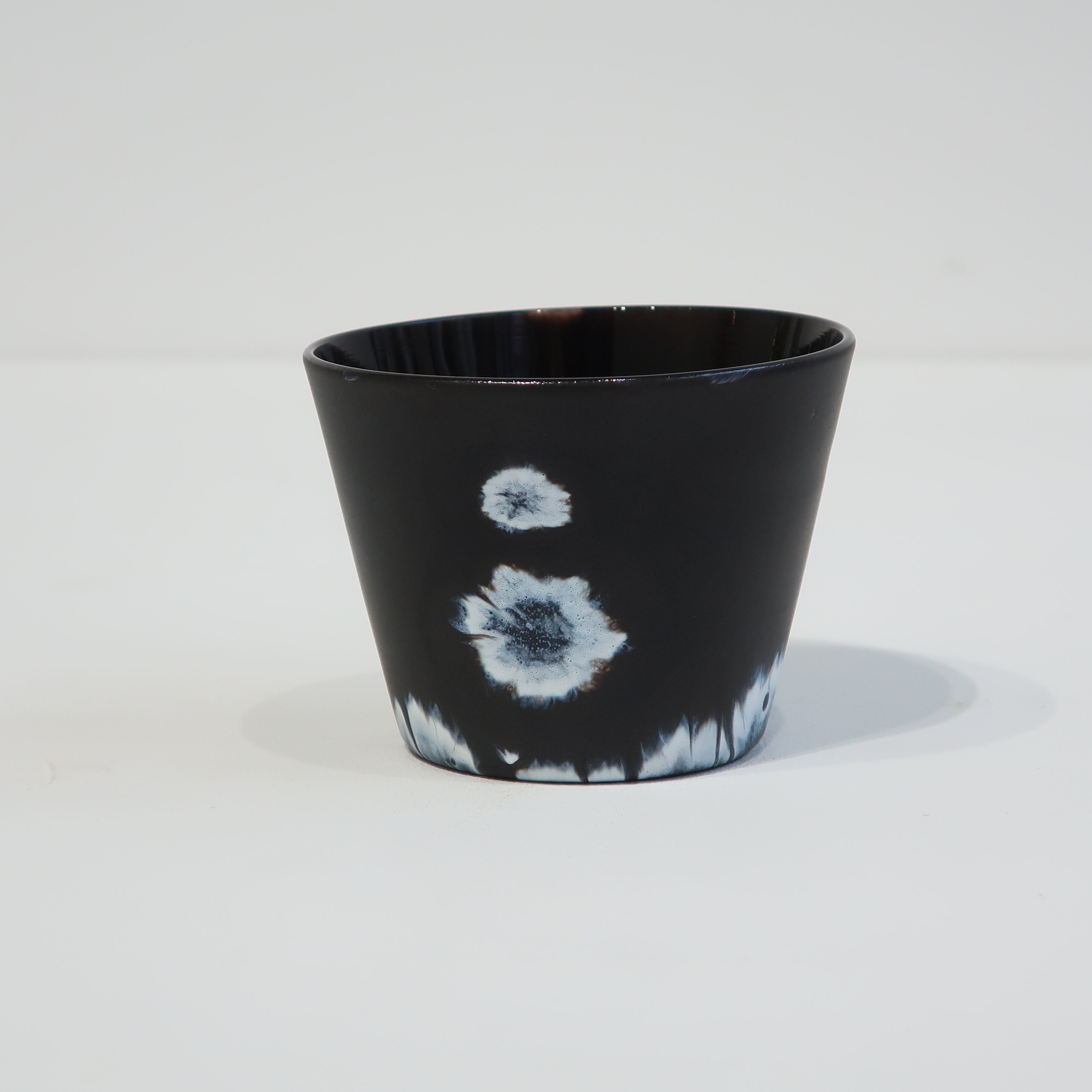 宙吹きガラスの技法の中で、炎、温度、時間、色、それぞれのある条件が重なって生まれる表情は唯一のものです。 流れる色や沸き立つ模様は絵の具のようにも見え、器の形をキャンバスに絵を描くような気持ちで制作しました。