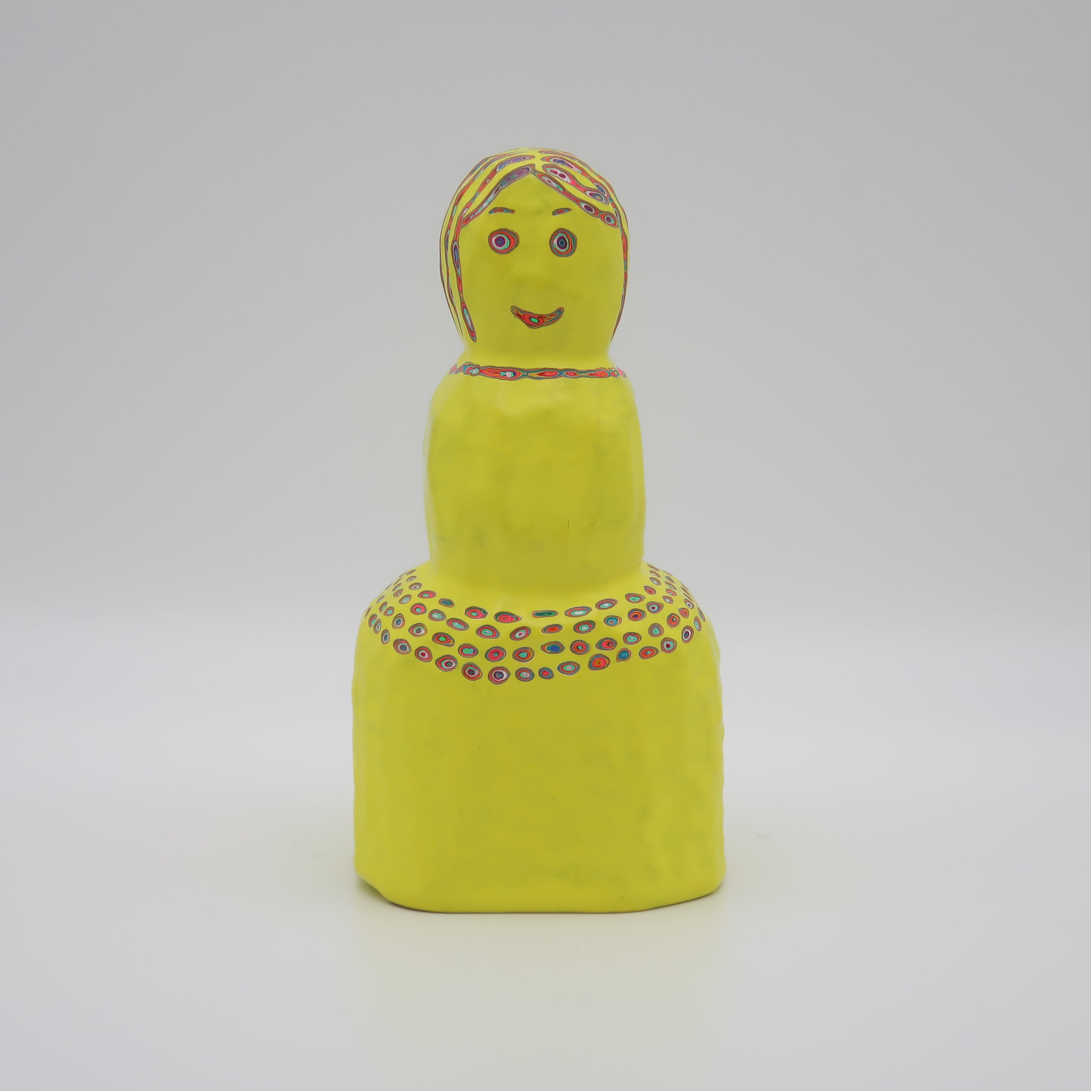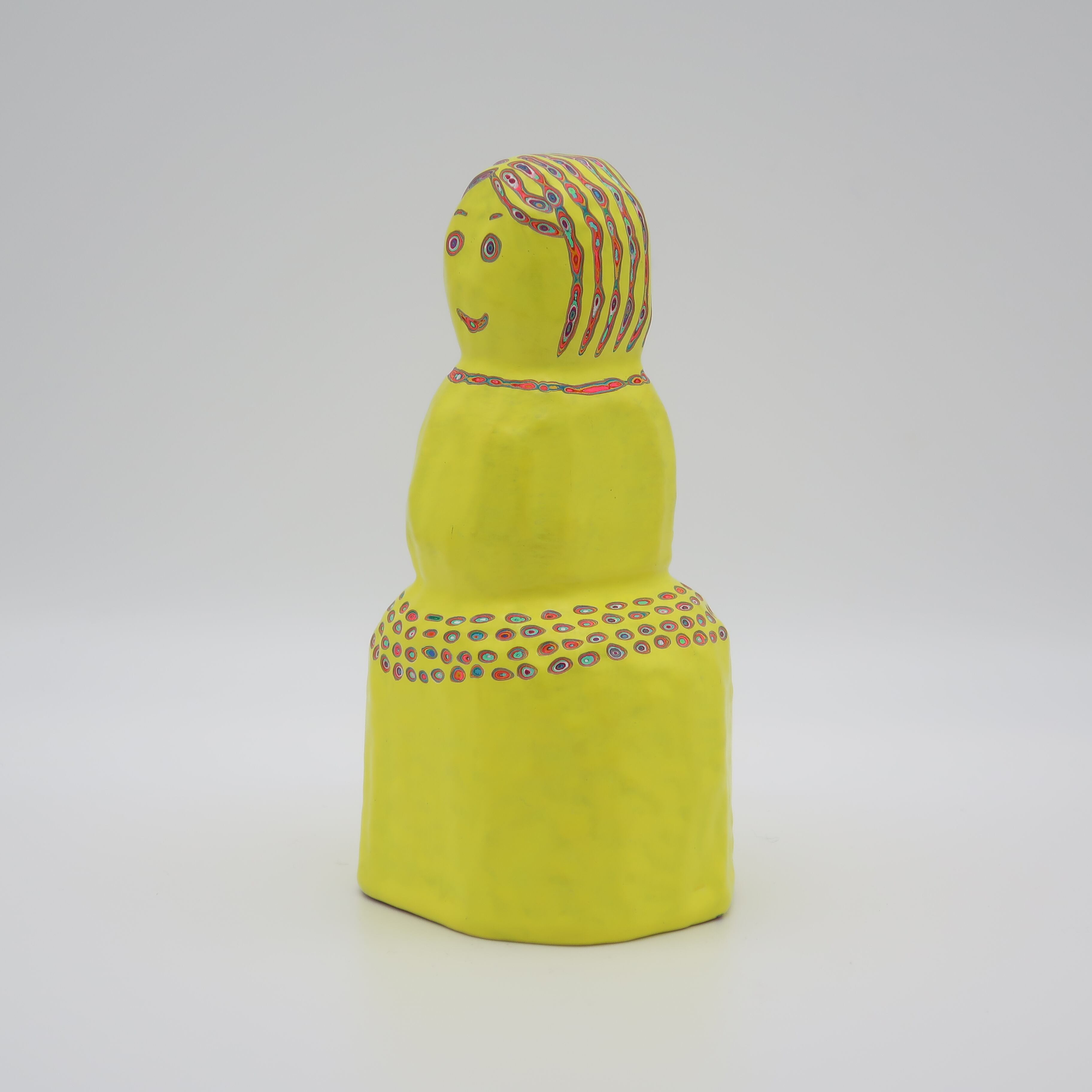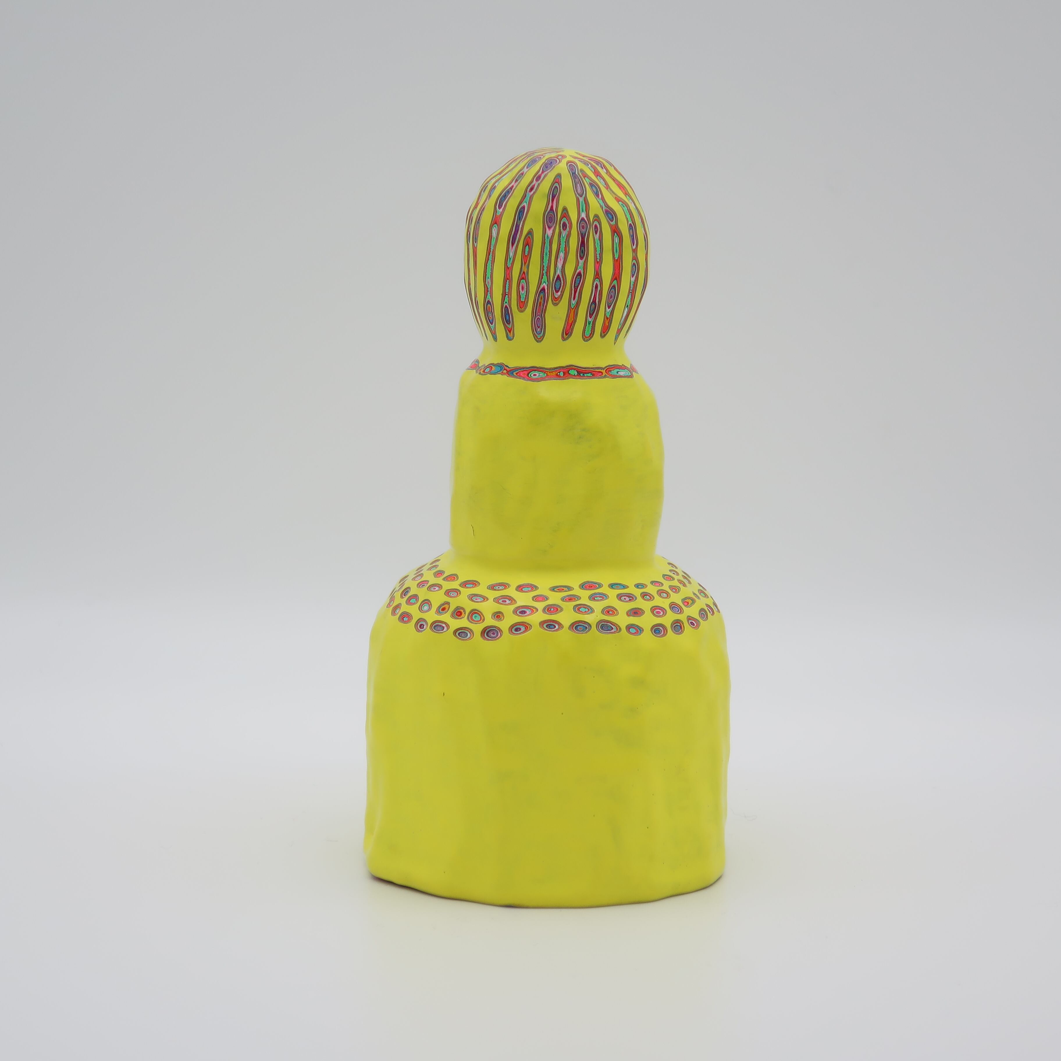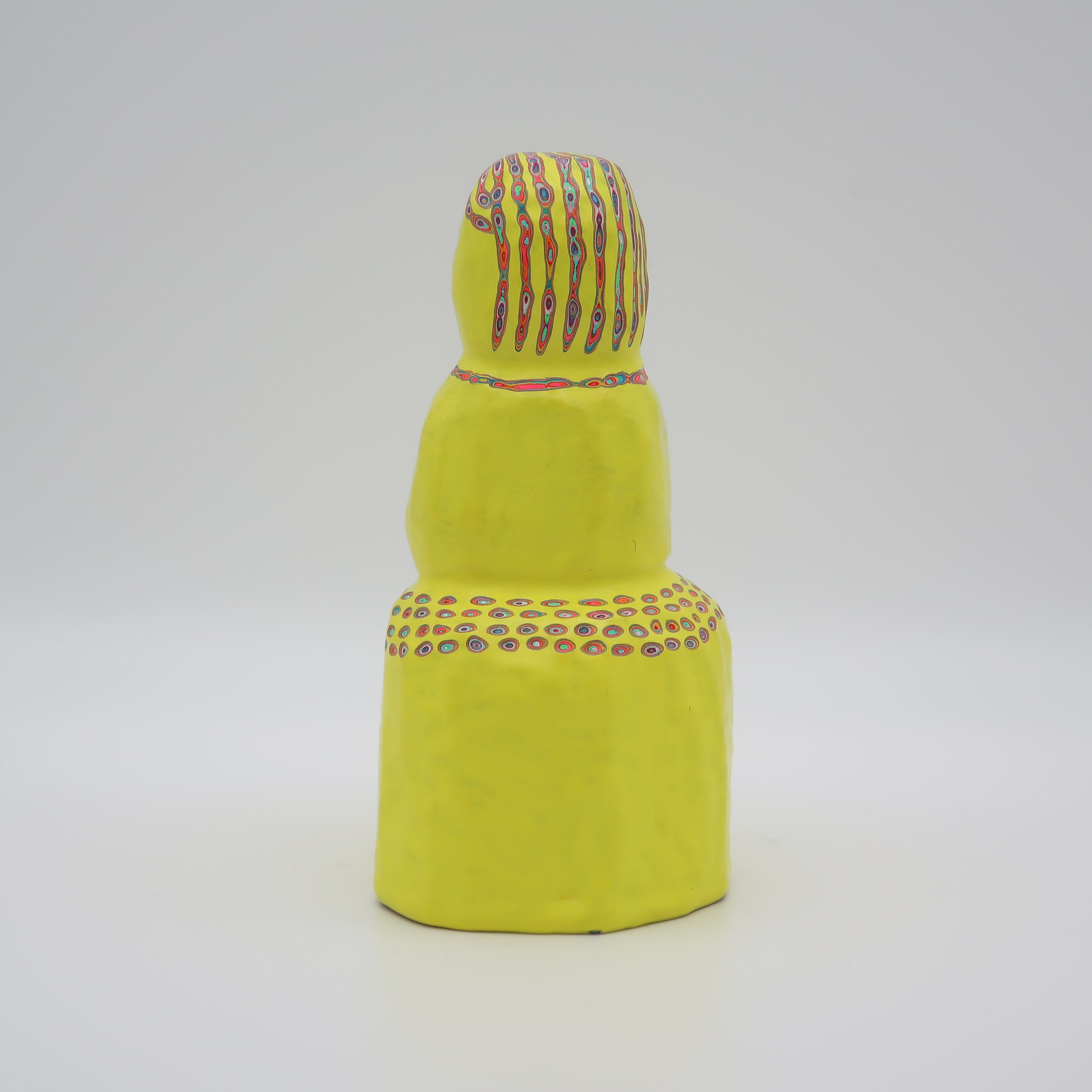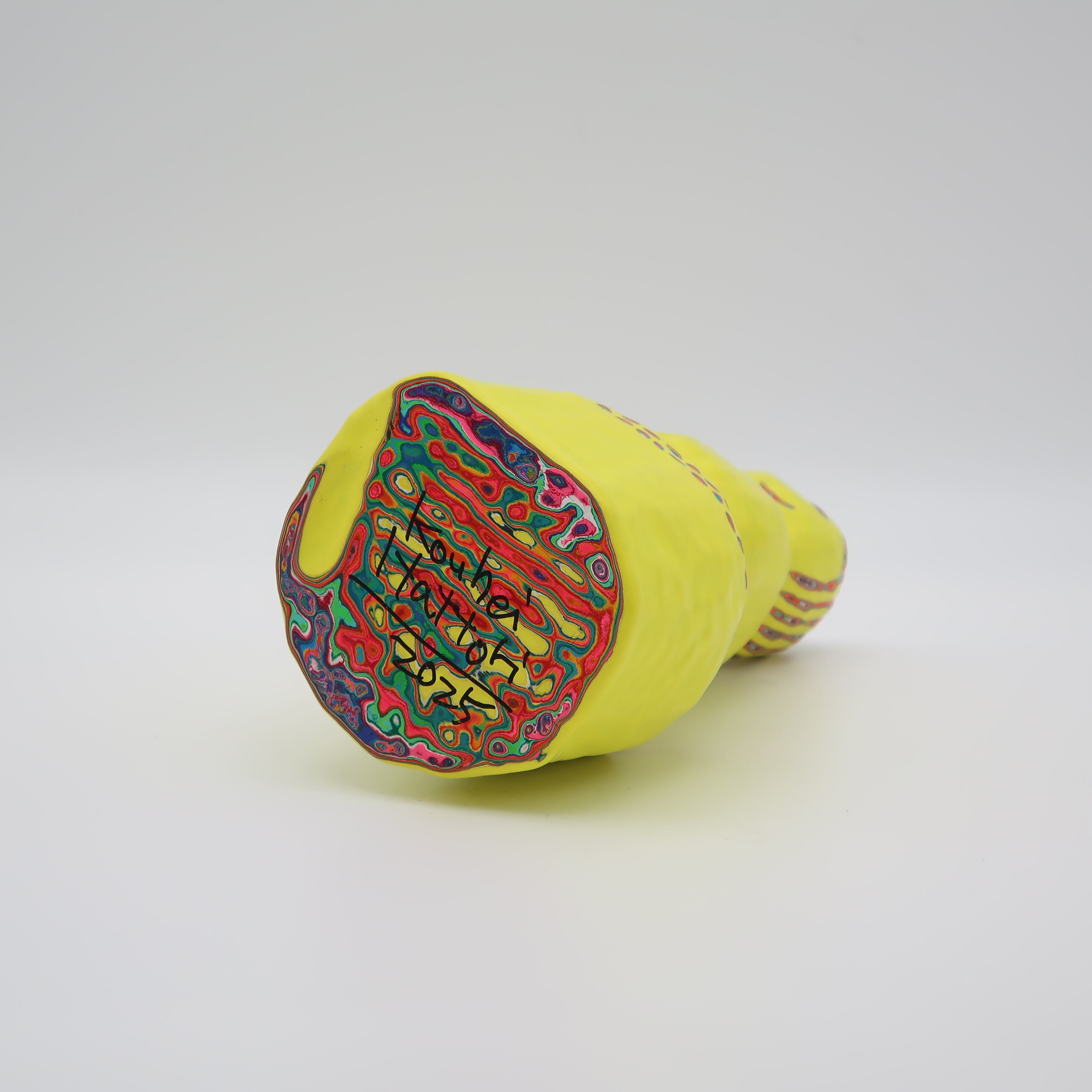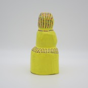 『COLOR SCULPTURE(色彩彫刻)』というオリジナルの手法で制作された木彫作品は、ポップでカラフルな見た目の奥に重層的なレイヤーが現れます。