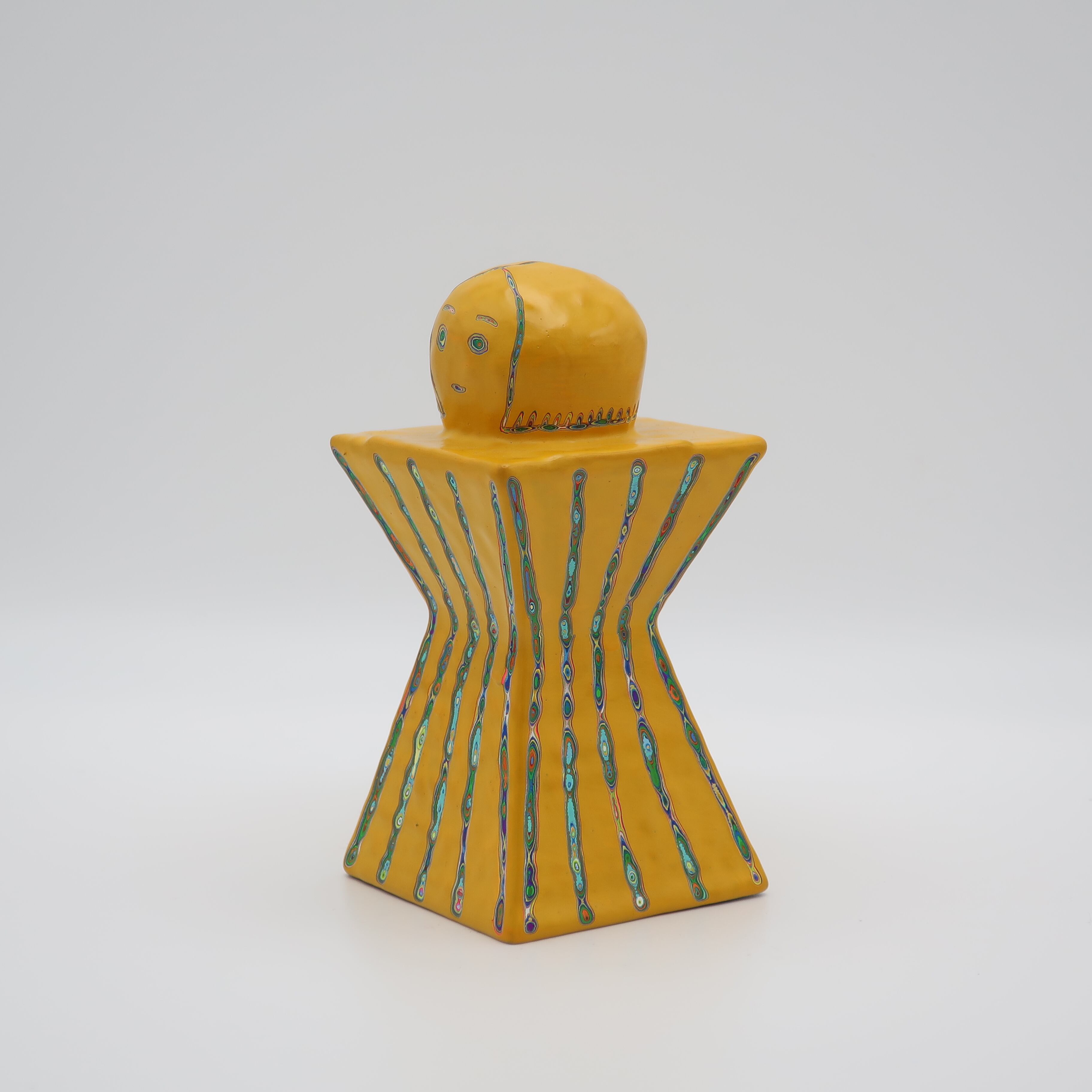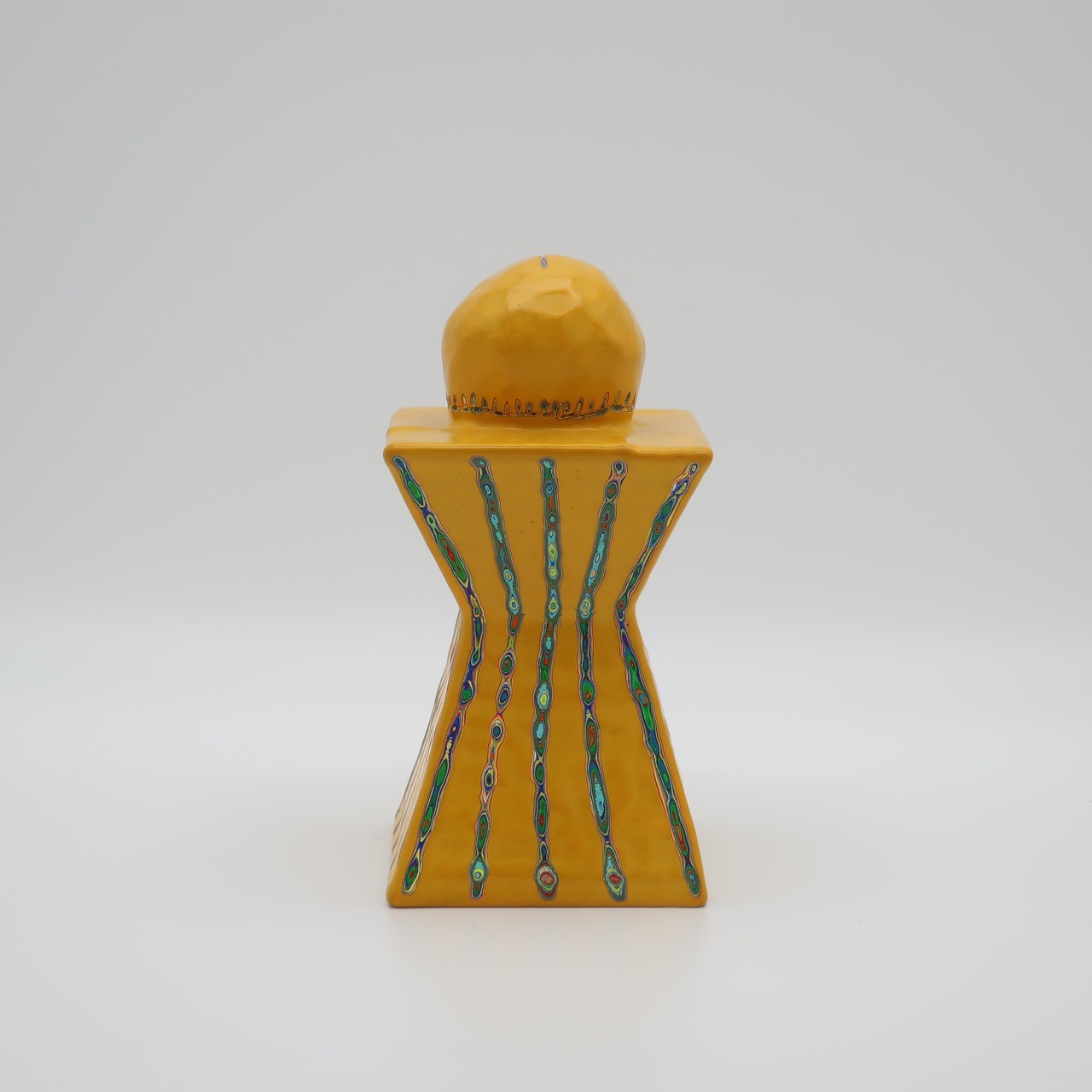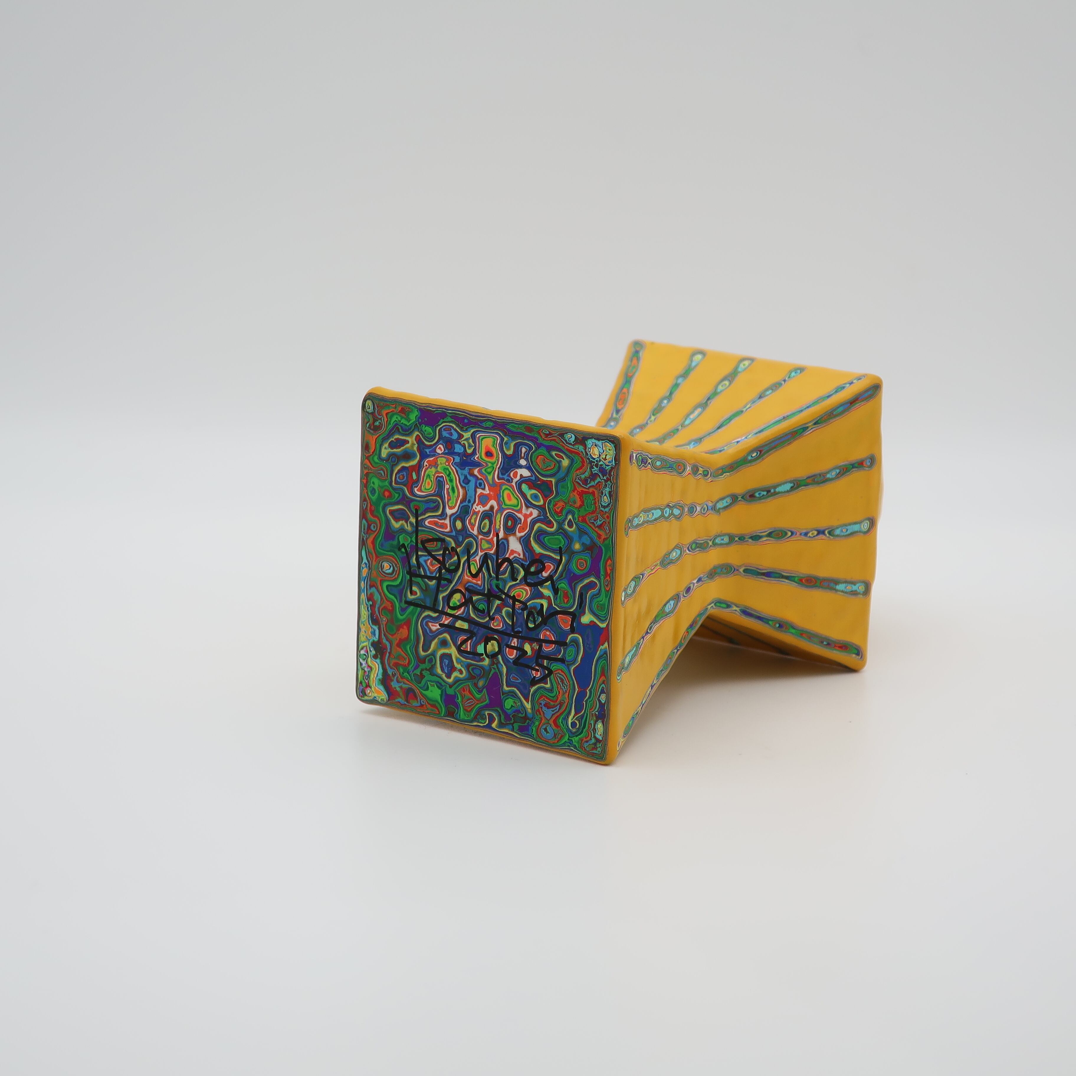 『COLOR SCULPTURE(色彩彫刻)』というオリジナルの手法で制作された木彫作品は、ポップでカラフルな見た目の奥に重層的なレイヤーが現れます。