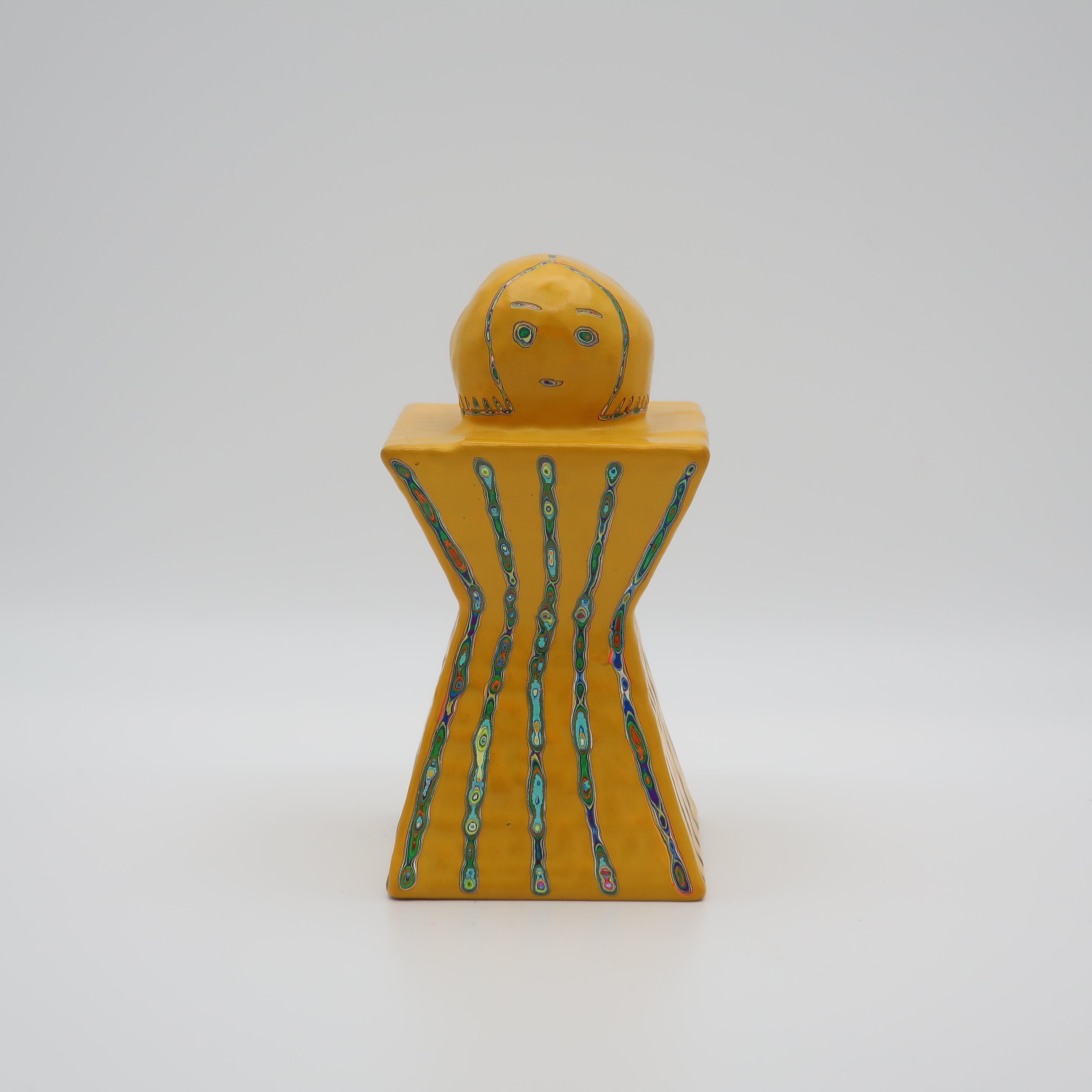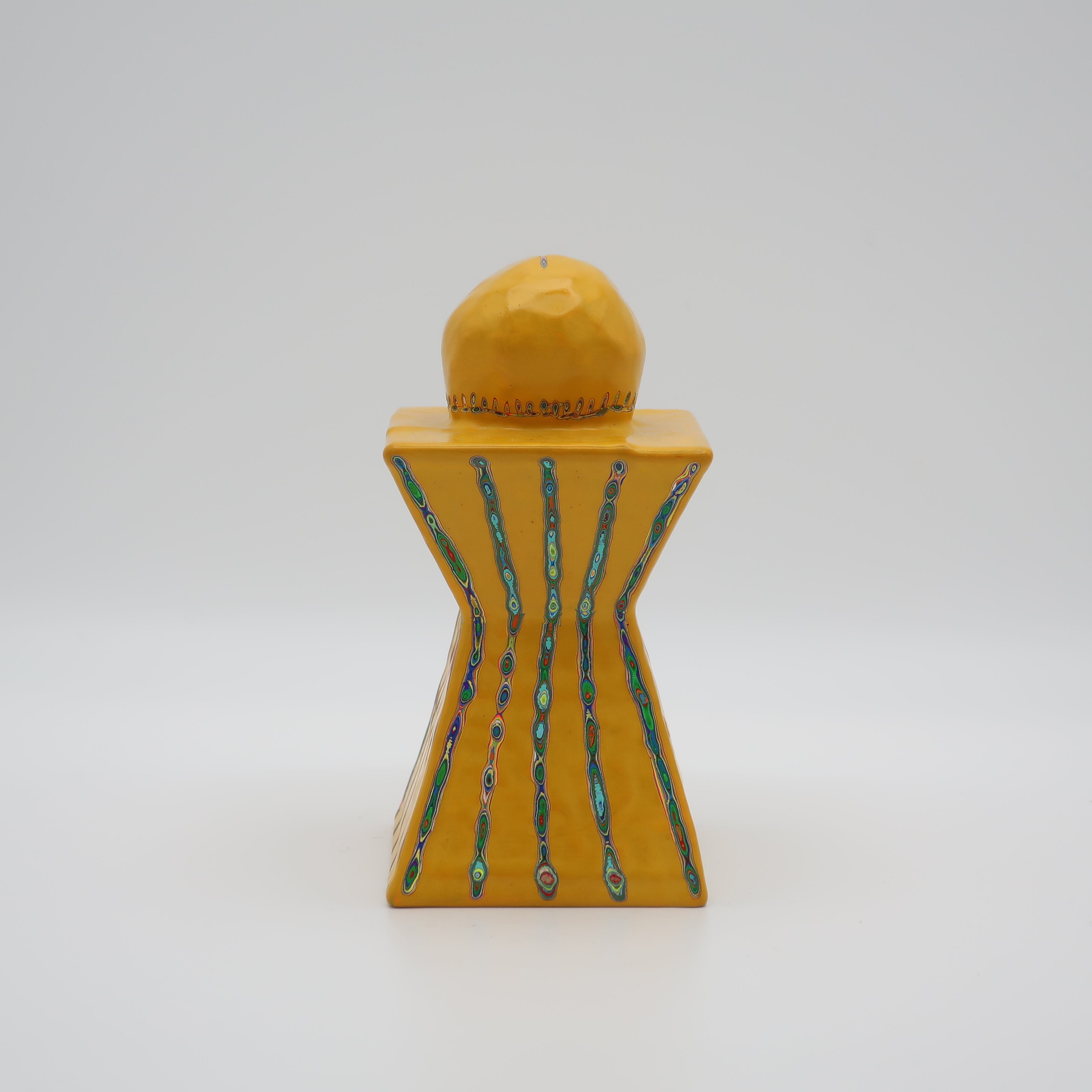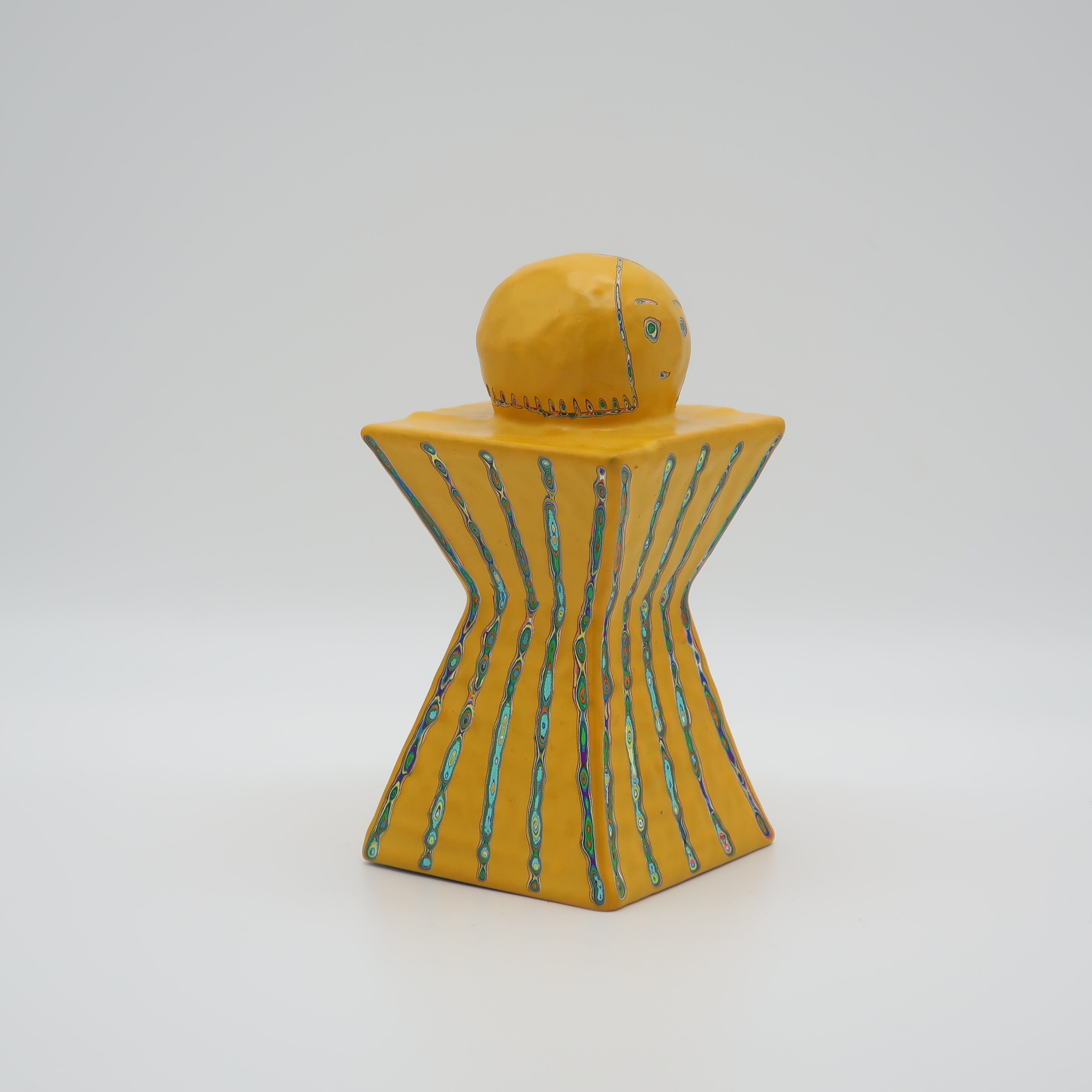 『COLOR SCULPTURE(色彩彫刻)』というオリジナルの手法で制作された木彫作品は、ポップでカラフルな見た目の奥に重層的なレイヤーが現れます。