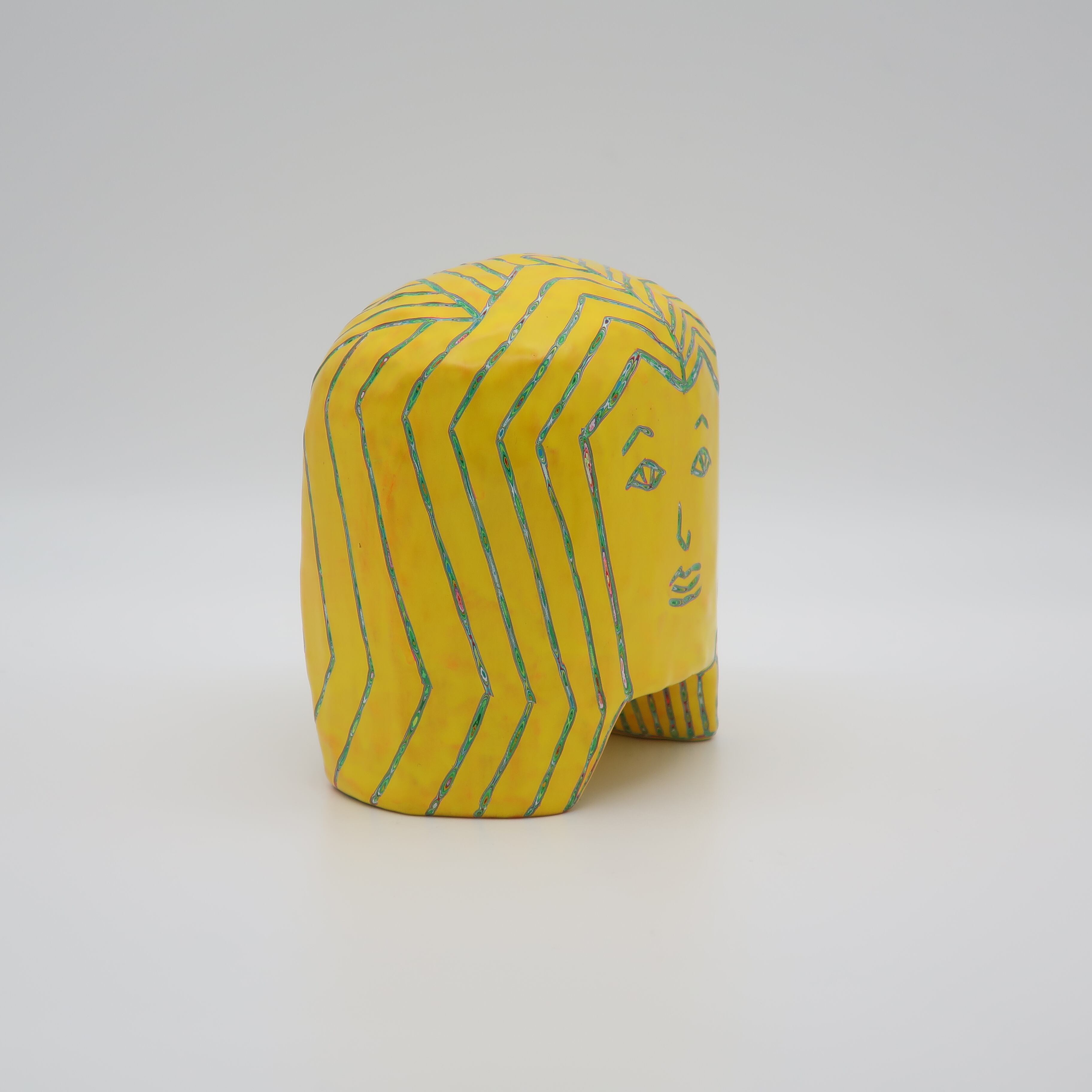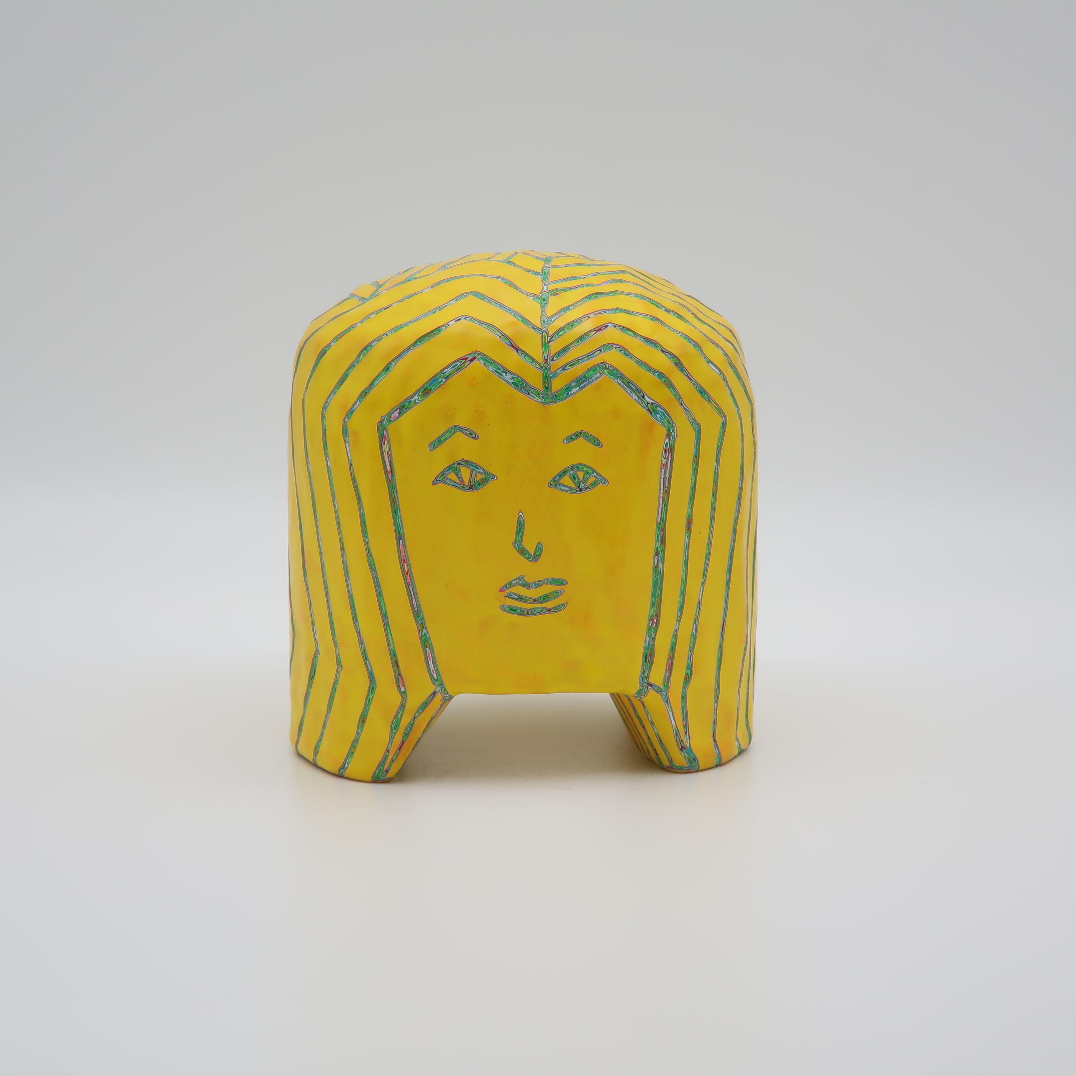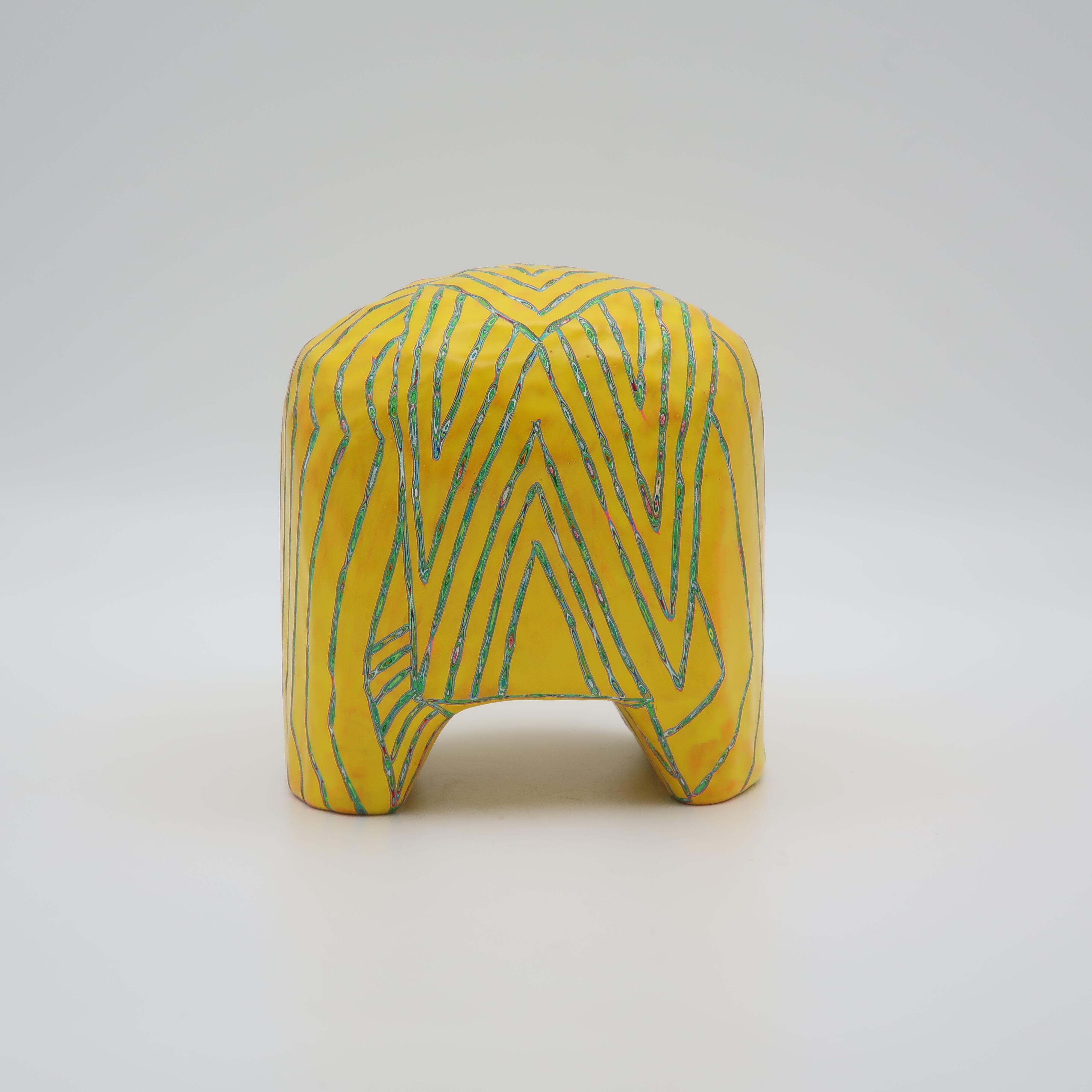『COLOR SCULPTURE(色彩彫刻)』というオリジナルの手法で制作された木彫作品は、ポップでカラフルな見た目の奥に重層的なレイヤーが現れます。