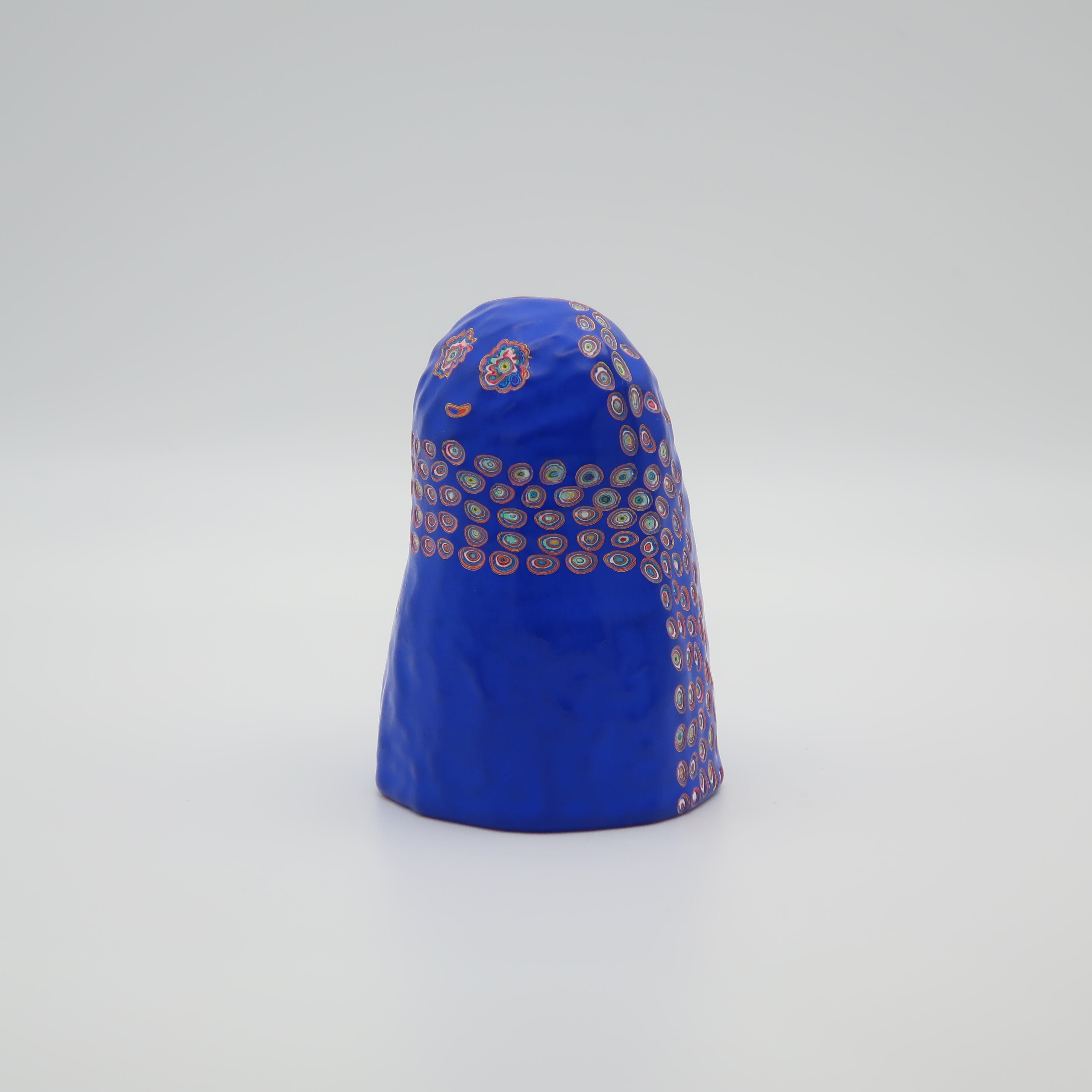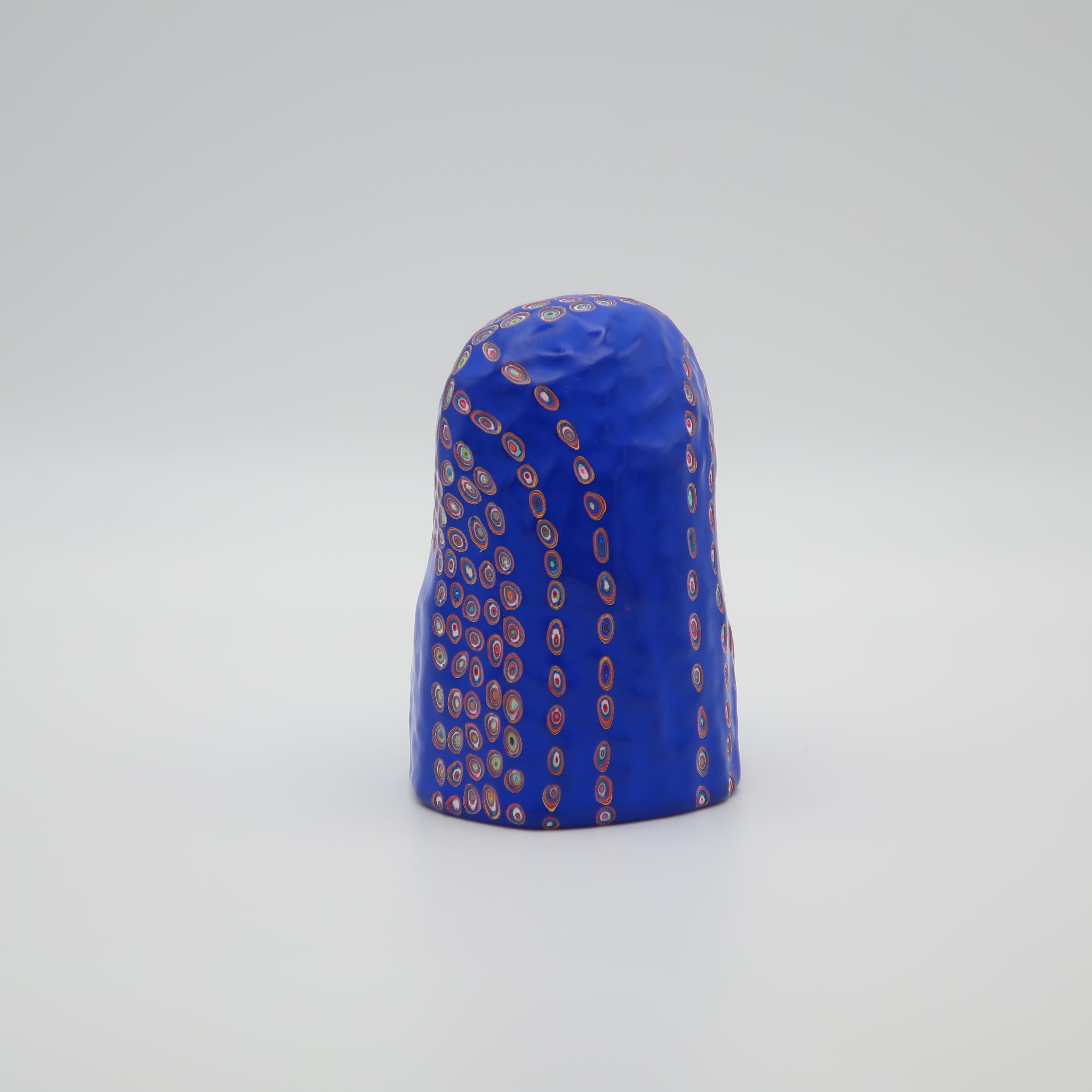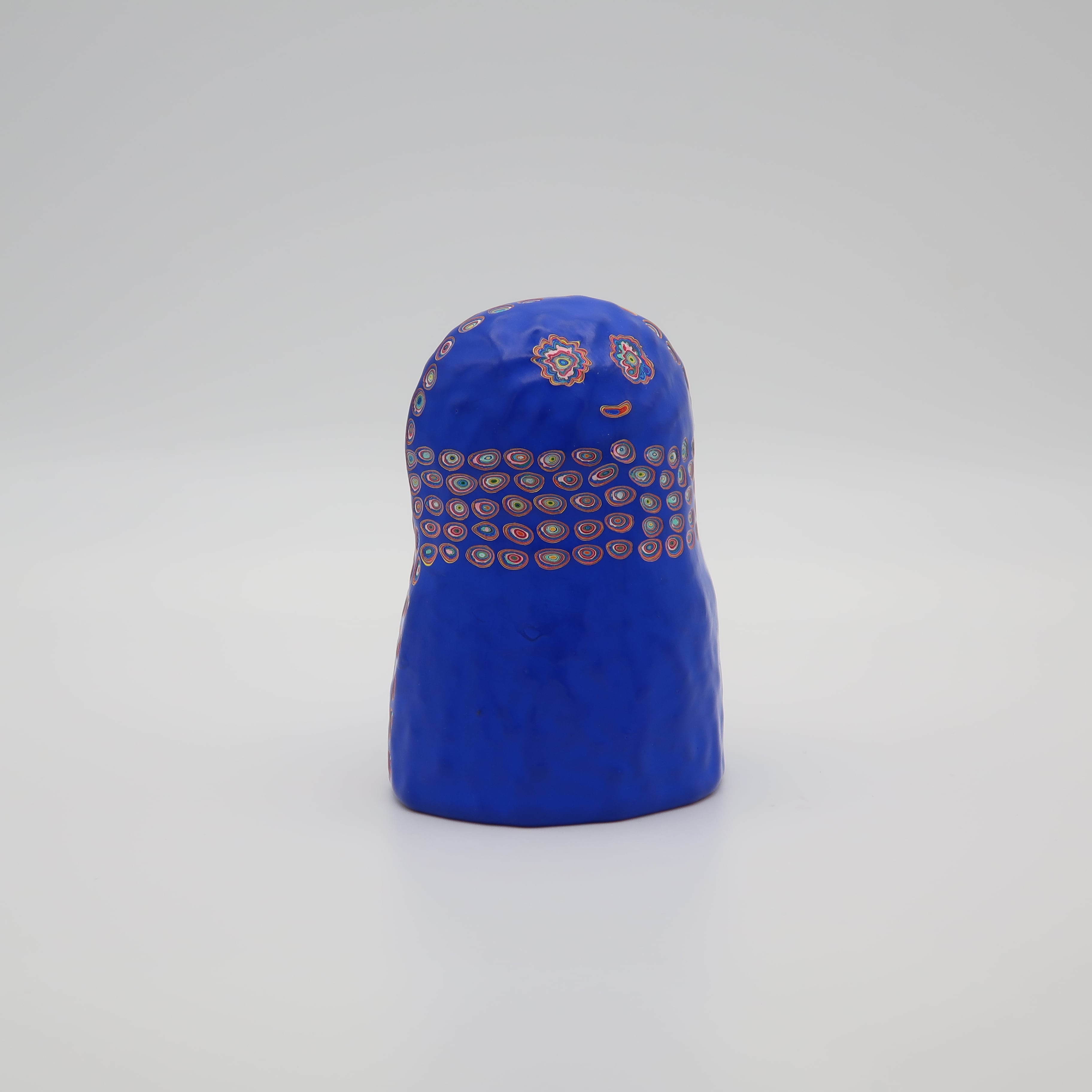 『COLOR SCULPTURE(色彩彫刻)』というオリジナルの手法で制作された木彫作品は、ポップでカラフルな見た目の奥に重層的なレイヤーが現れます。