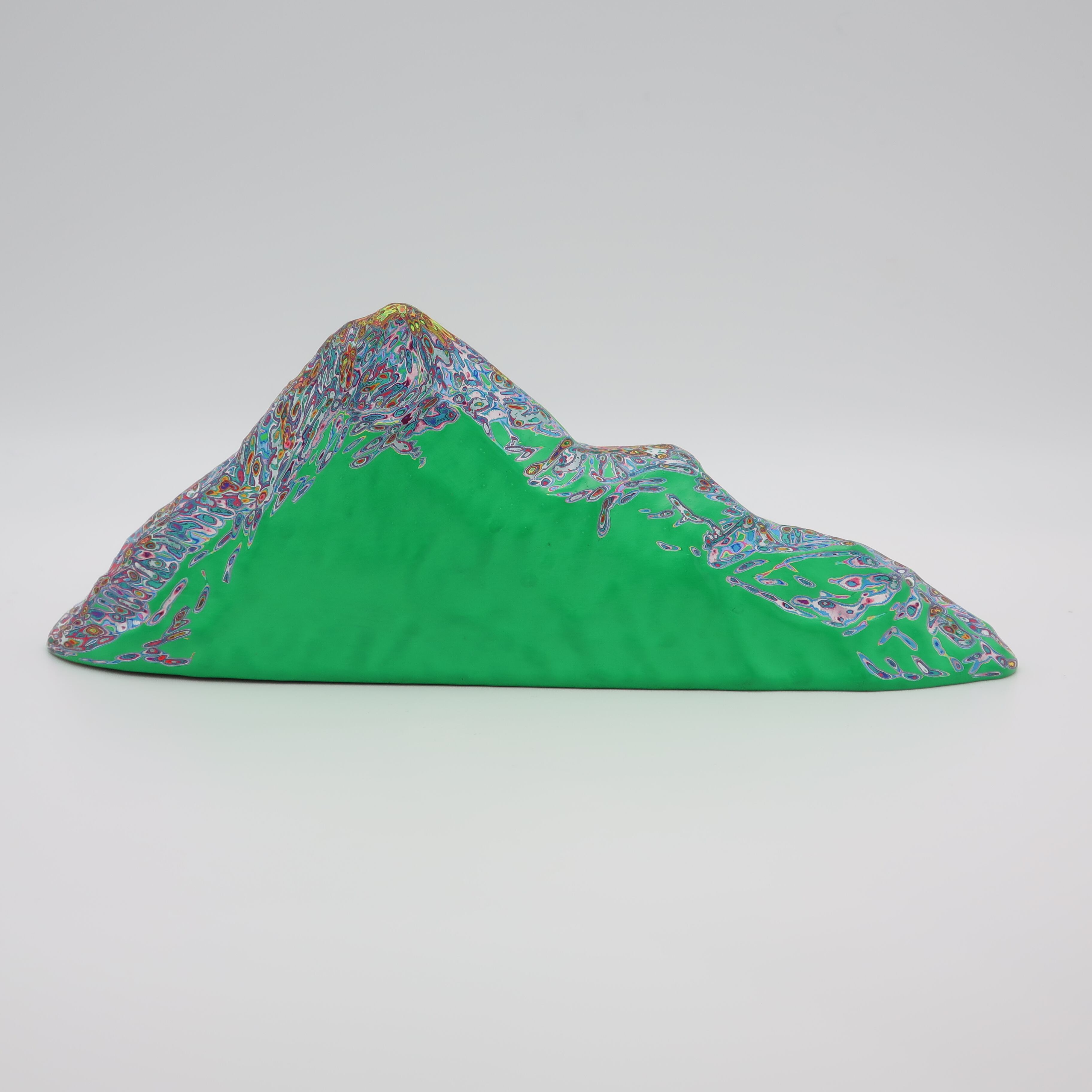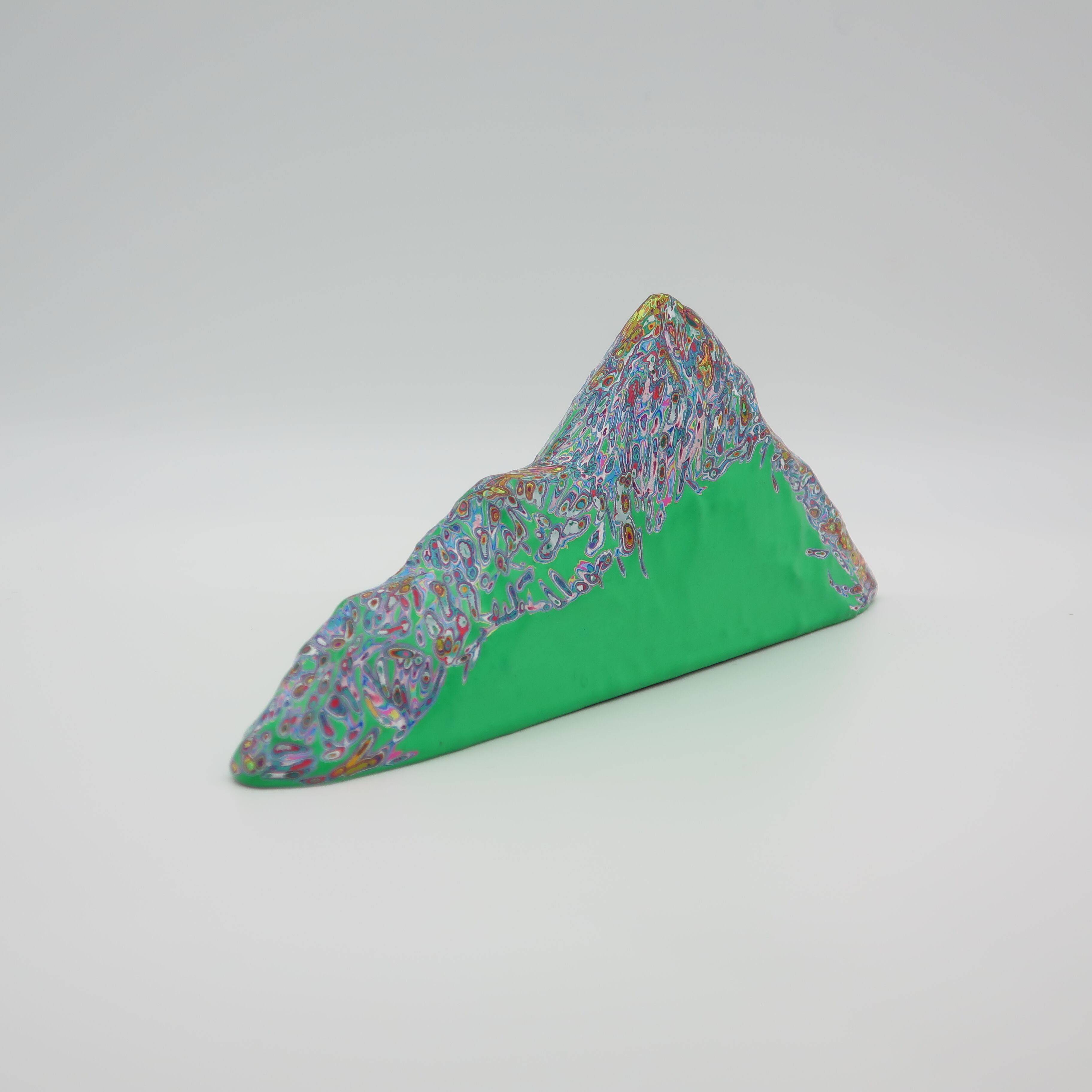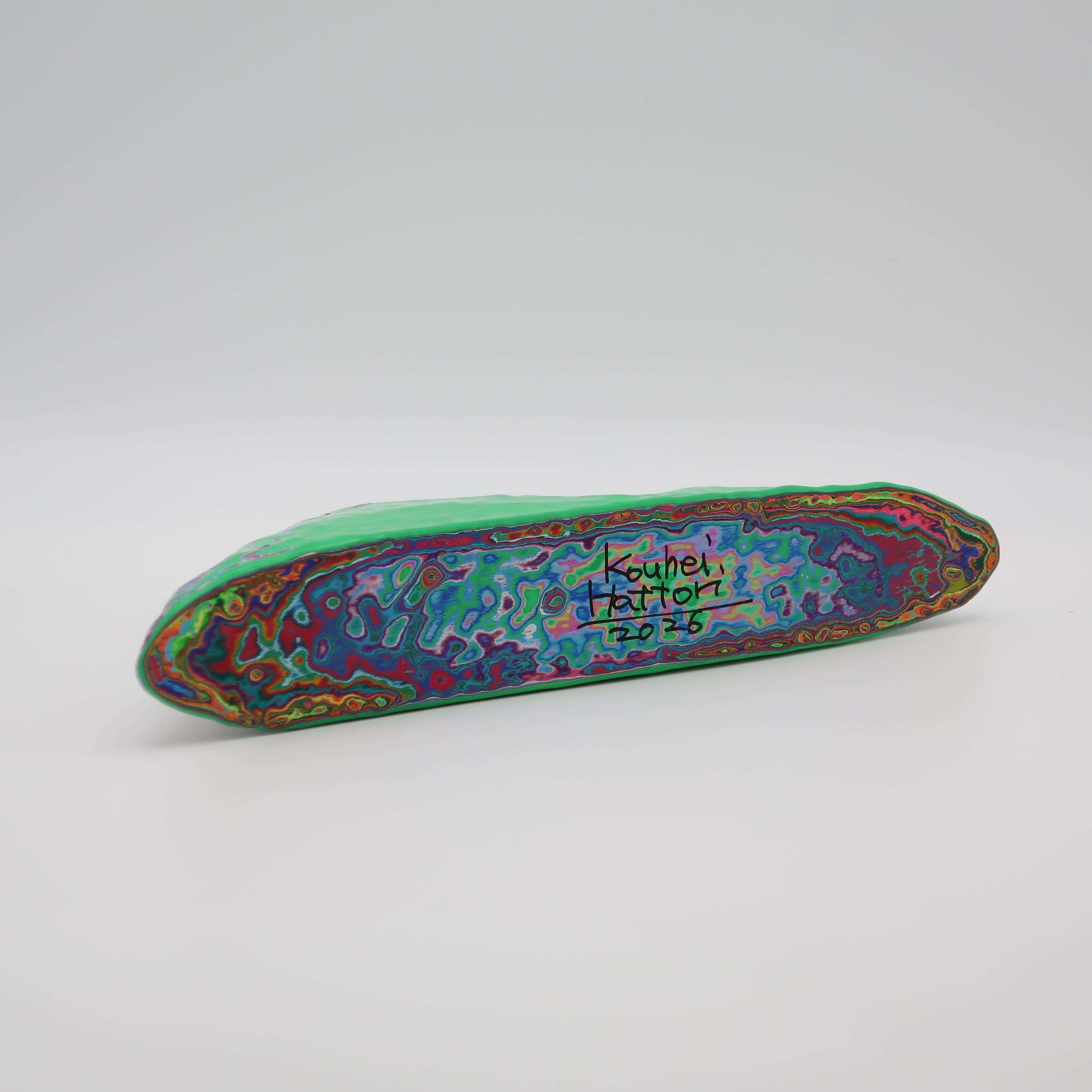 『COLOR SCULPTURE(色彩彫刻)』というオリジナルの手法で制作された木彫作品は、ポップでカラフルな見た目の奥に重層的なレイヤーが現れます。