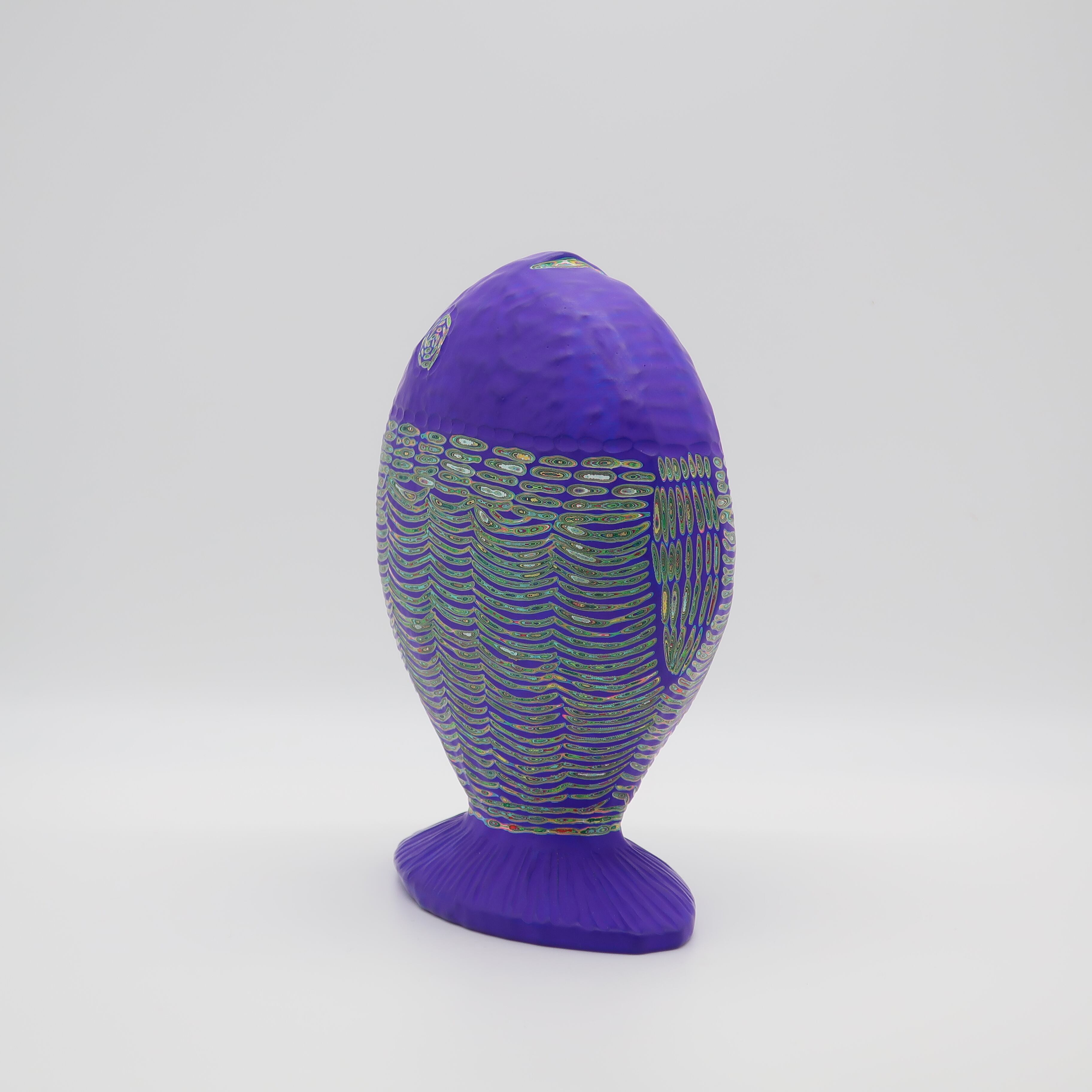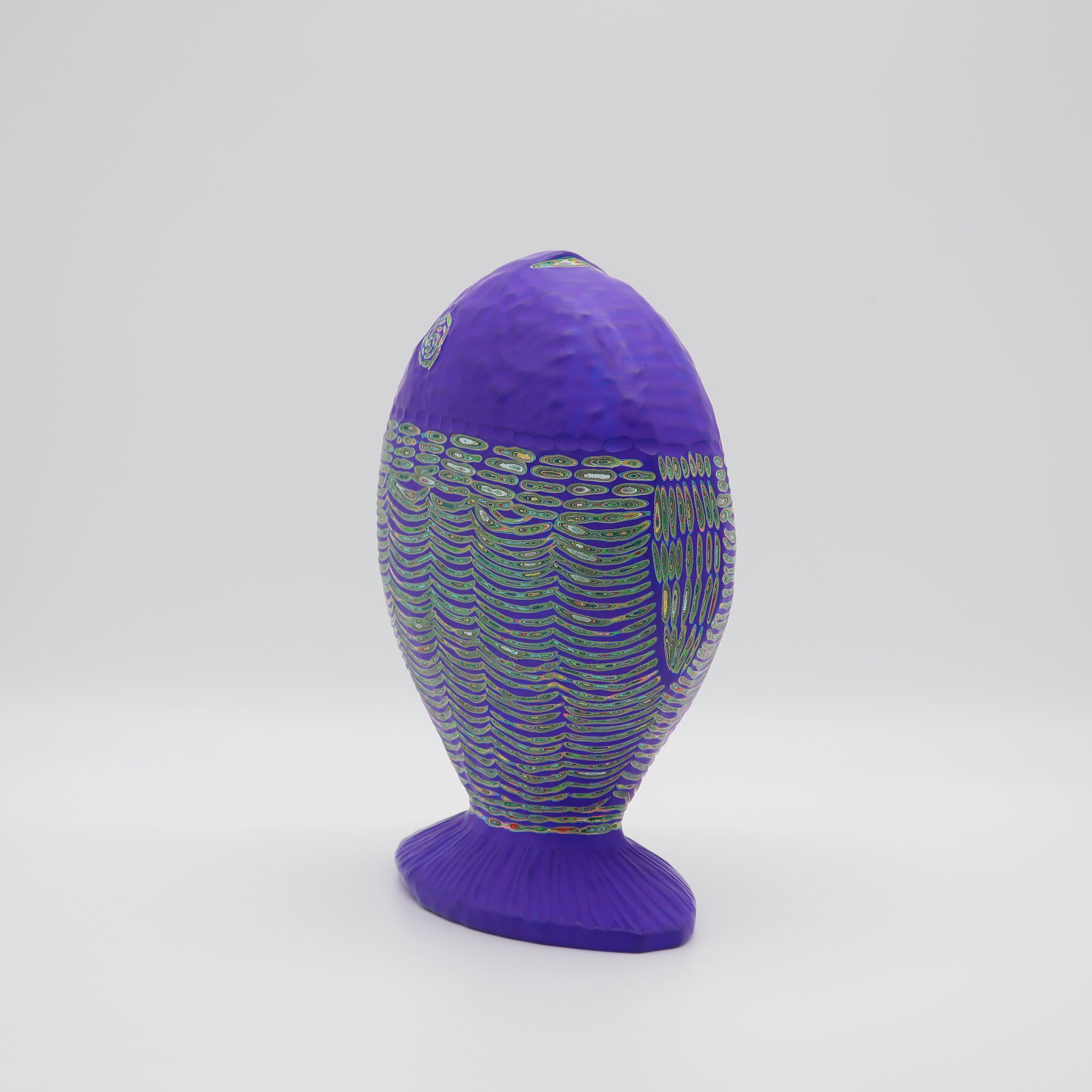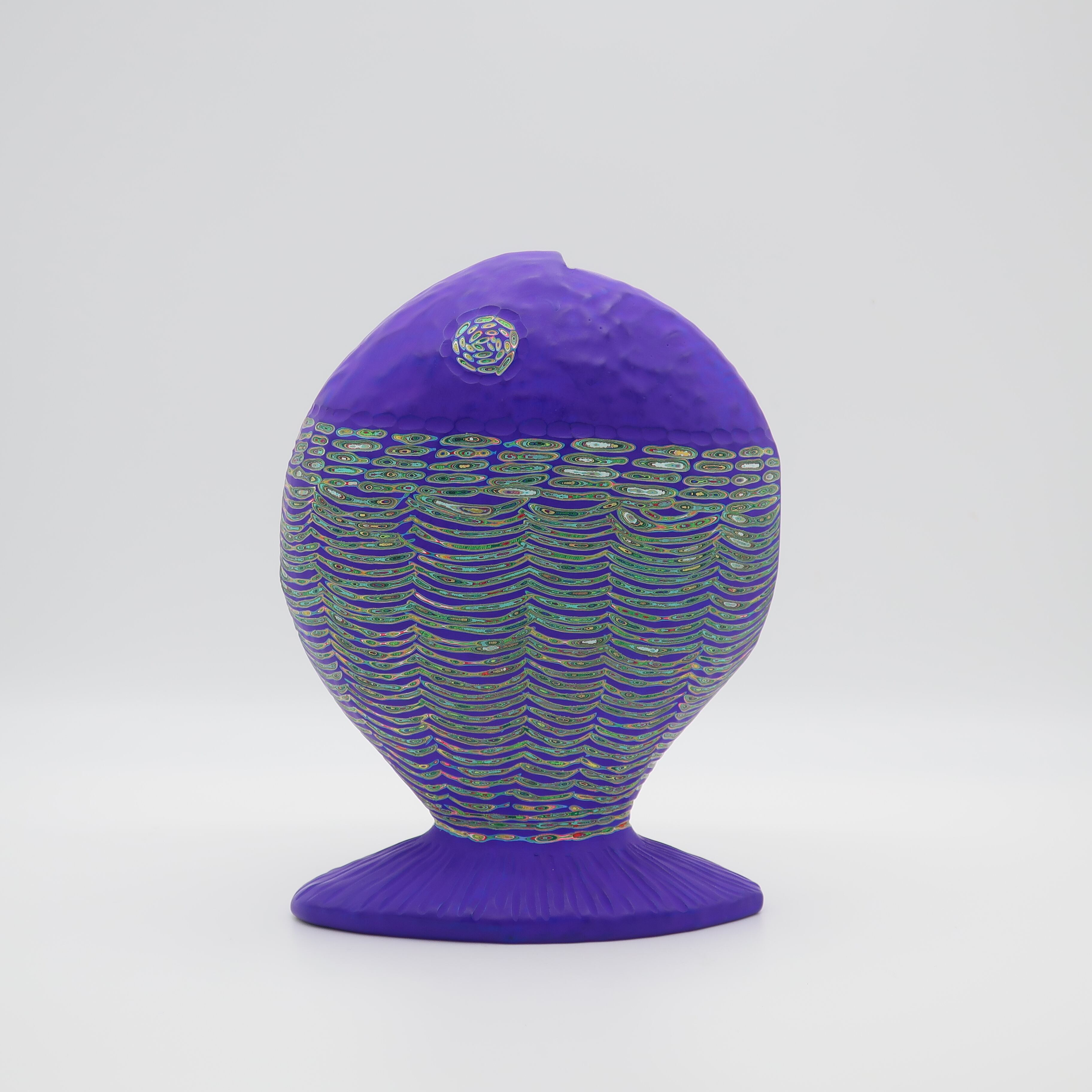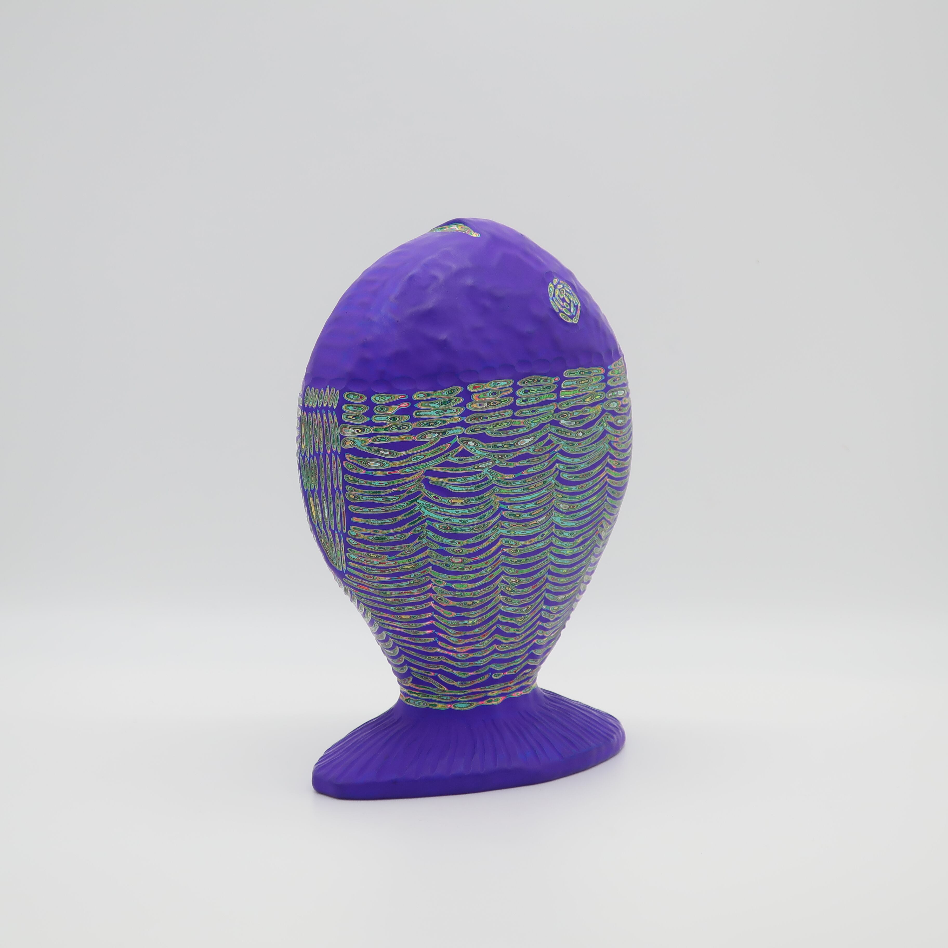 『COLOR SCULPTURE(色彩彫刻)』というオリジナルの手法で制作された木彫作品は、ポップでカラフルな見た目の奥に重層的なレイヤーが現れます。