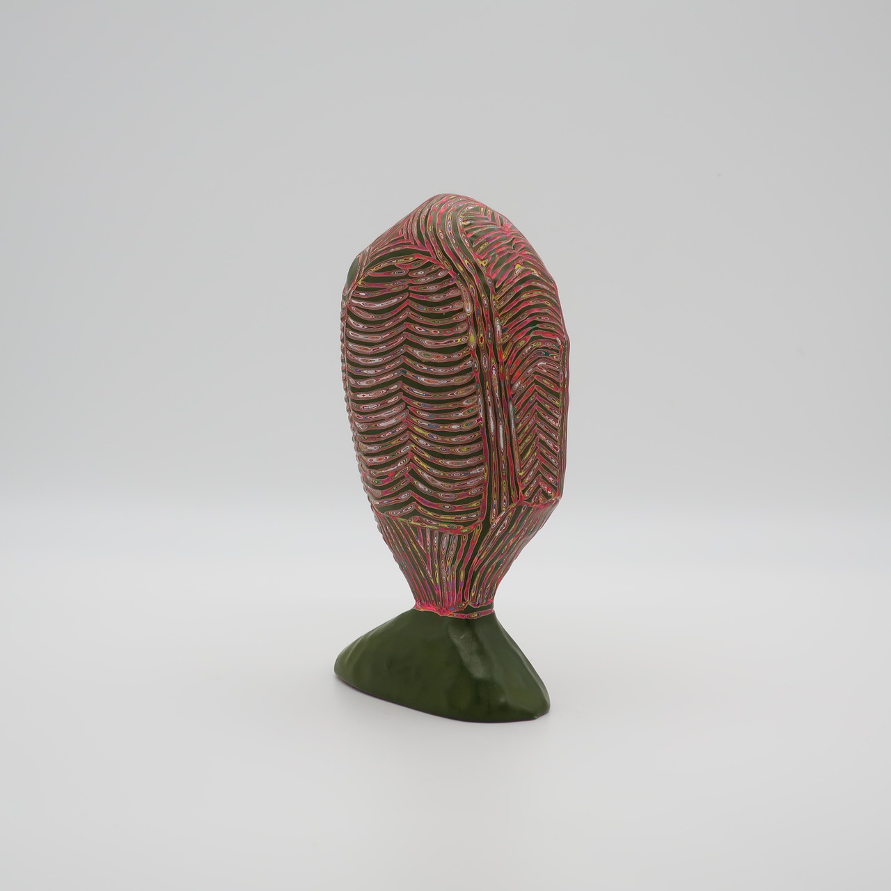 100層の色を重ね、色を彫刻する。木彫をベースにしながら、アクリル絵具を気が遠くなるほど塗り重ね、「色」という皮膚を厚くしていきます。