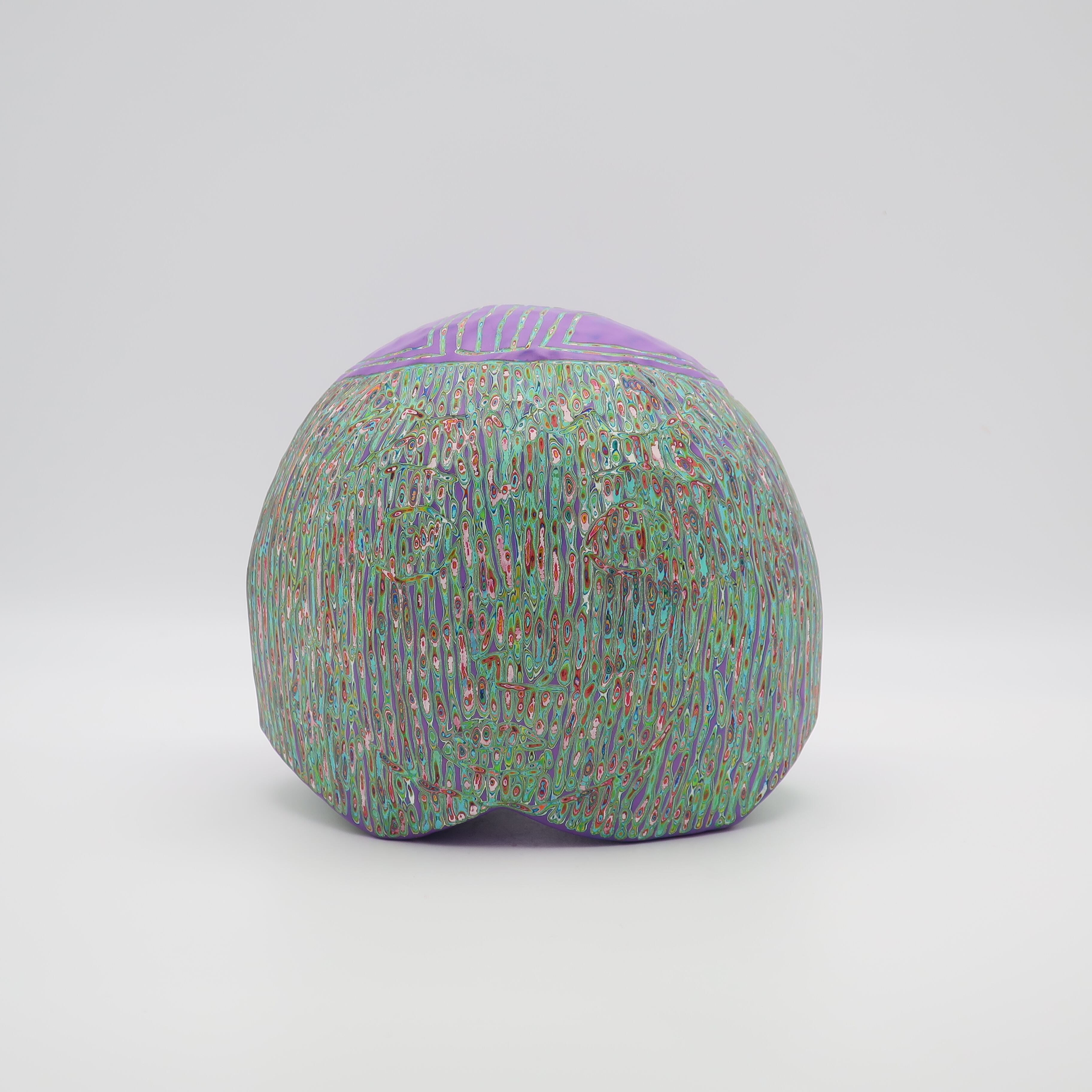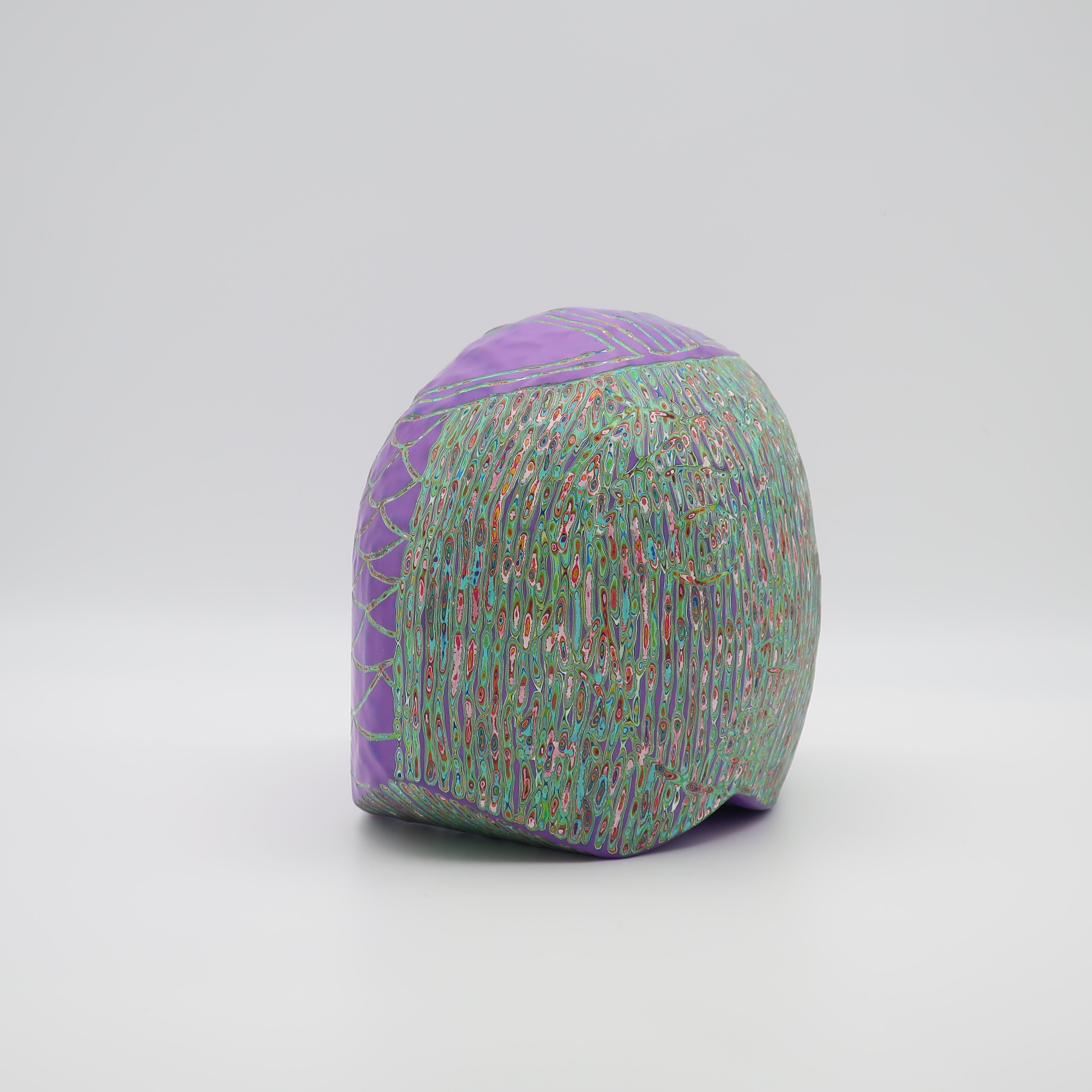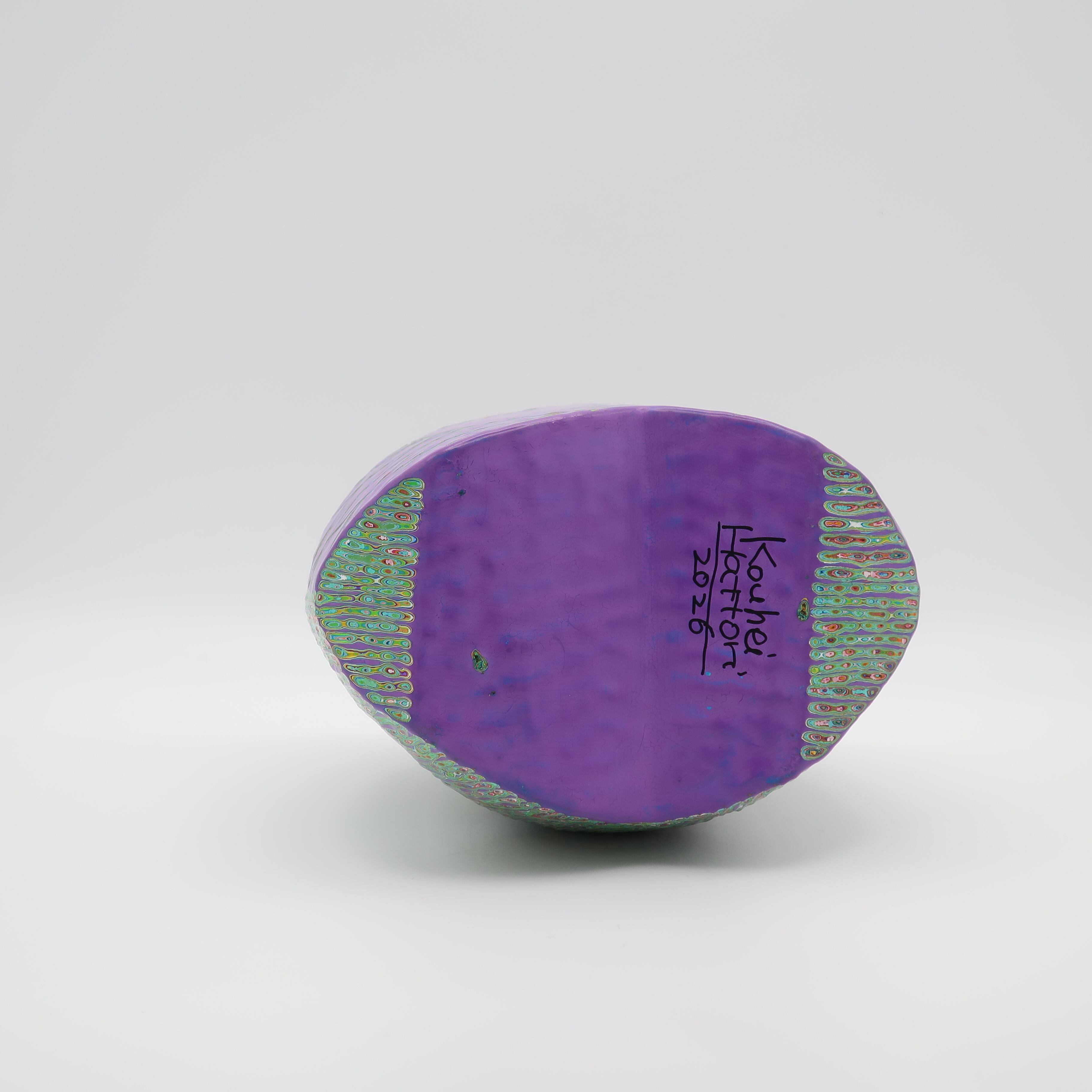 『COLOR SCULPTURE(色彩彫刻)』というオリジナルの手法で制作された木彫作品は、ポップでカラフルな見た目の奥に重層的なレイヤーが現れます。