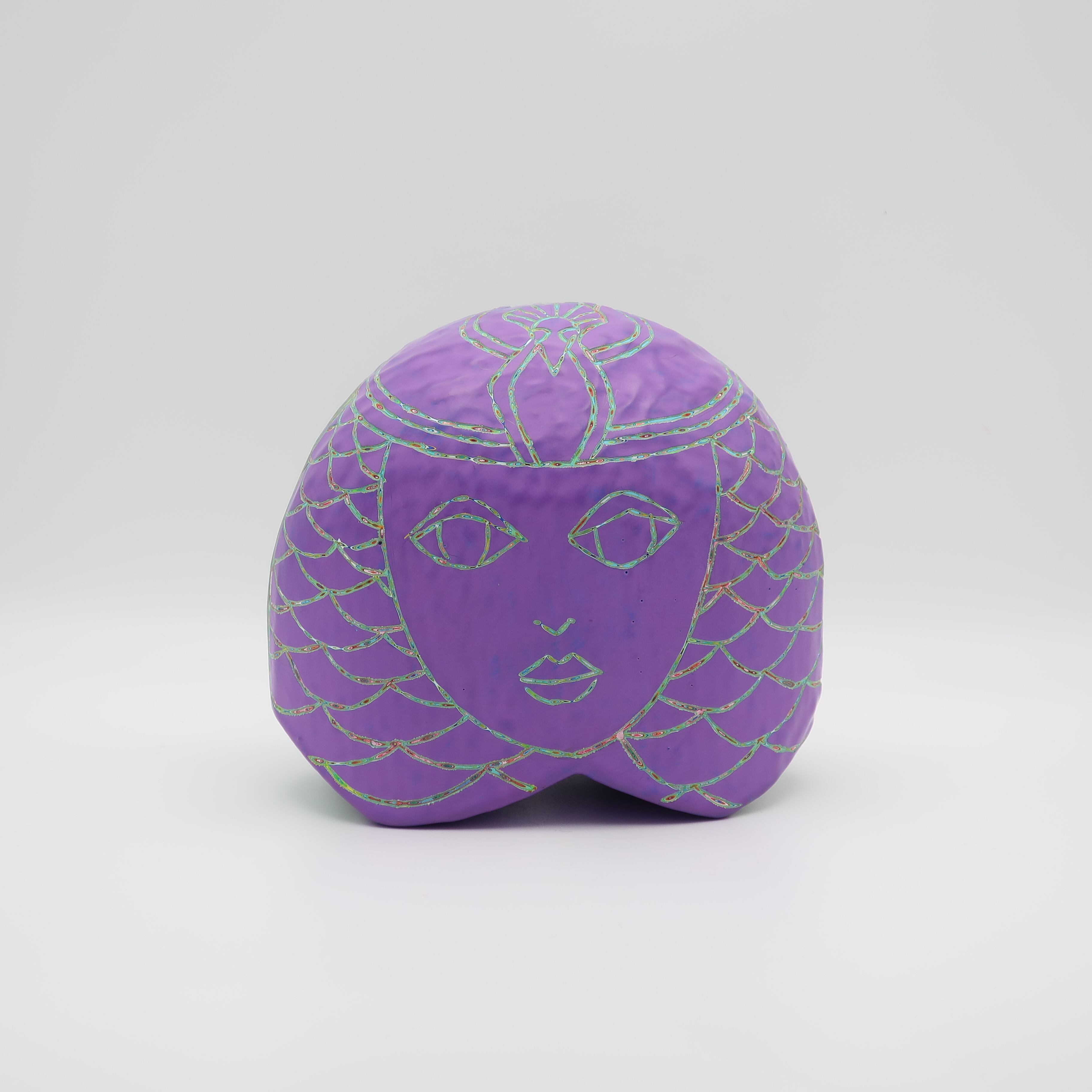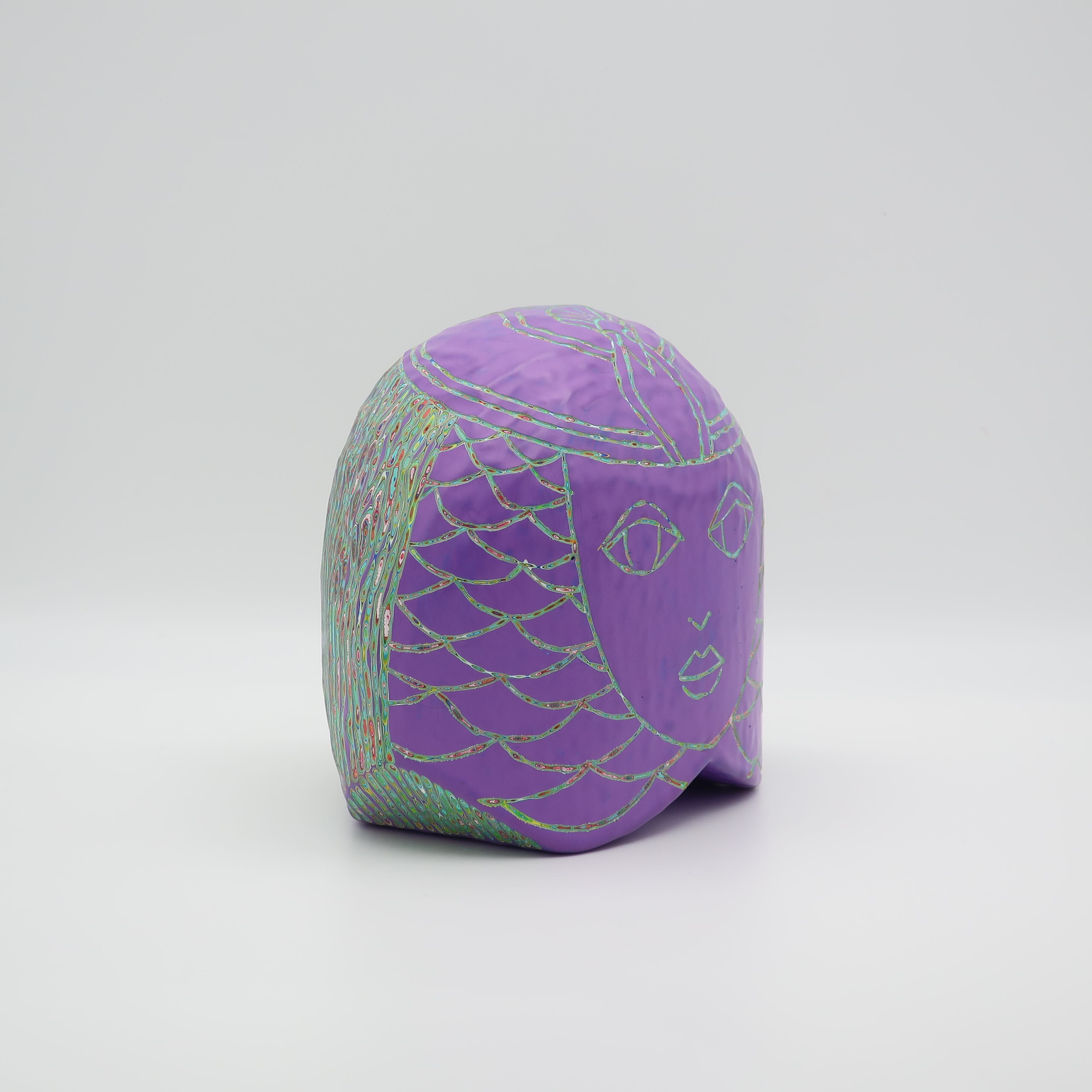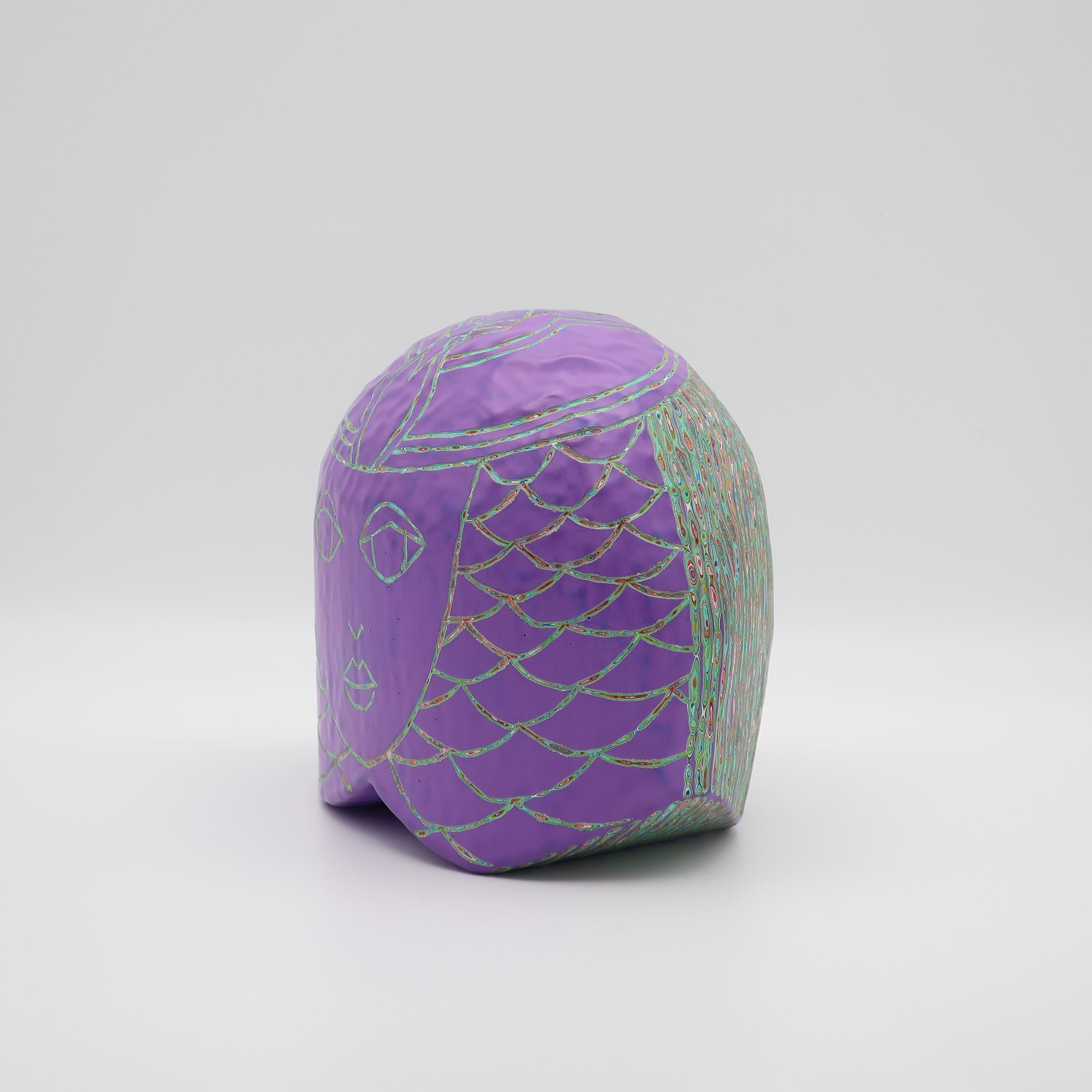 『COLOR SCULPTURE(色彩彫刻)』というオリジナルの手法で制作された木彫作品は、ポップでカラフルな見た目の奥に重層的なレイヤーが現れます。